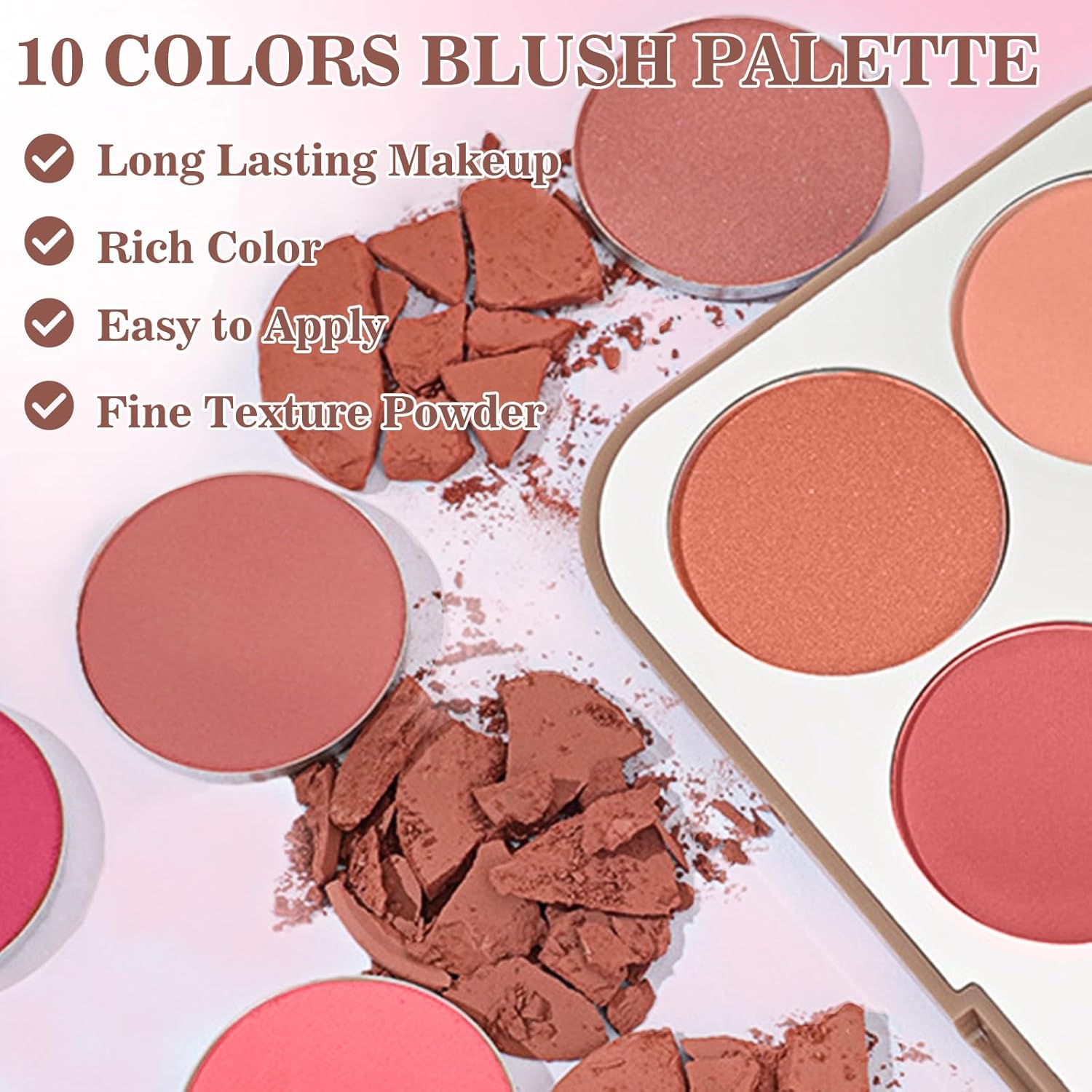 10 Colors Blush Palette for Cheeks, Natural Matte Finish Blush Powder for Face, Long Lasting Buildable Facial Makeup Palette-Set 02