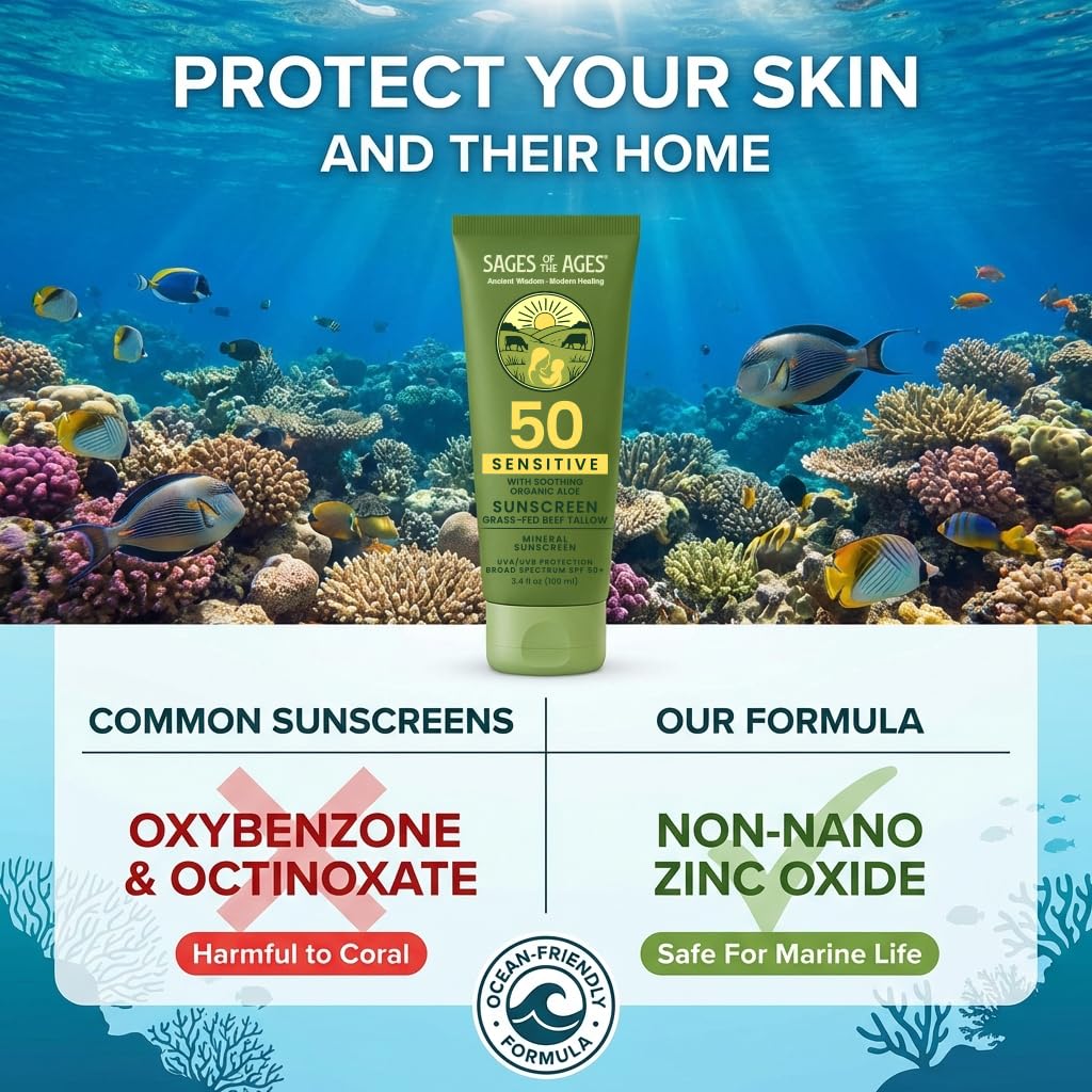 Be the first to review “100% Mineral Sunscreen SPF 50 with Non-Nano Zinc Oxide — Reef Safe UVA/UVB Broad Spectrum Sunblock, Water Resistant 80 Min, Moisturizing Tallow Lotion for Face & Body, 3.4 fl oz”