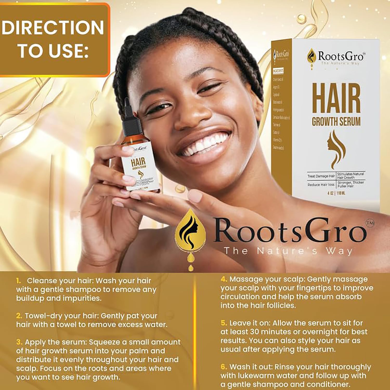 Nourishment for Thicker, Fuller Hair: Enriched with a unique combination of natural oils and nutrients, RootsGro Hair Serum aims to enhance hair texture and condition. Designed for deep penetration, it provides essential nourishment to each strand. This serum is perfect for those seeking a holistic approach to daily hair care. By potentially reducing hair loss and promoting an appearance, and potentially supports your hair’s vitality and resilience