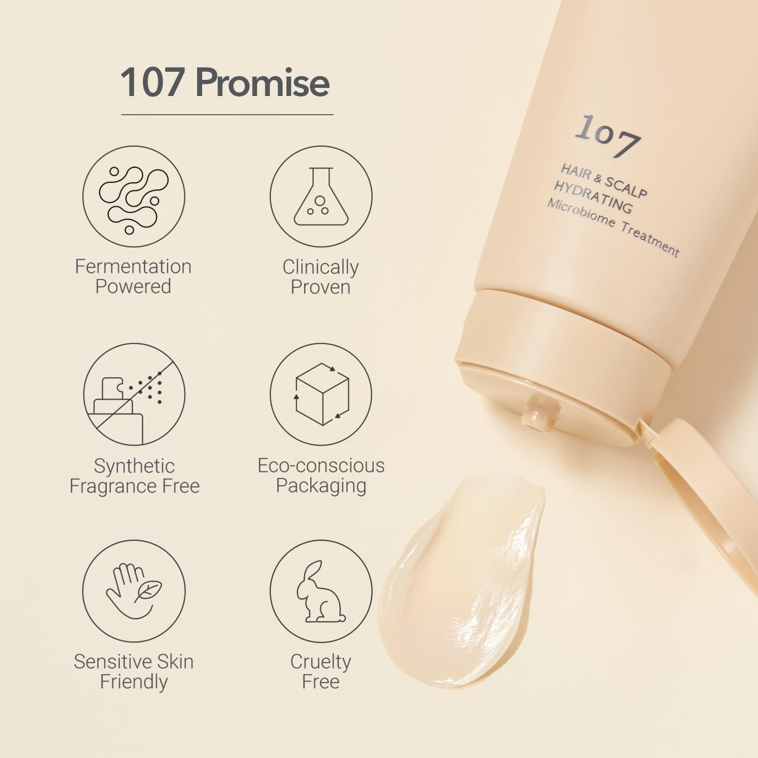 Deep dydrating : 107’s hydrating hair treatment helps refresh the scalp and will leave your hair feeling soft, shiny, and hydrated.