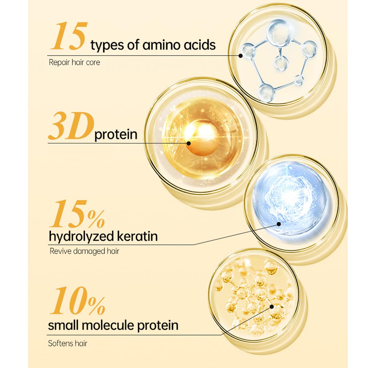 8-second penetration: penetrates layer by layer from the surface to the hair core, injecting nutrients, and repairing from the hair core to the outer layer, restore hair vitality