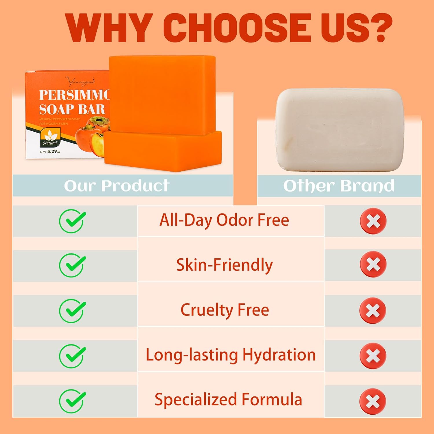 𝗦𝗨𝗜𝗧𝗔𝗕𝗟𝗘 𝗙𝗢𝗥 𝗘𝗩𝗘𝗥𝗬𝗢𝗡𝗘:Use our deodorant soap for kids, old people or stinky teenagers! Our persimmon deodorant soap is handmade with natural ingredients. It is gentle and non-irritating and suitable for everyone.