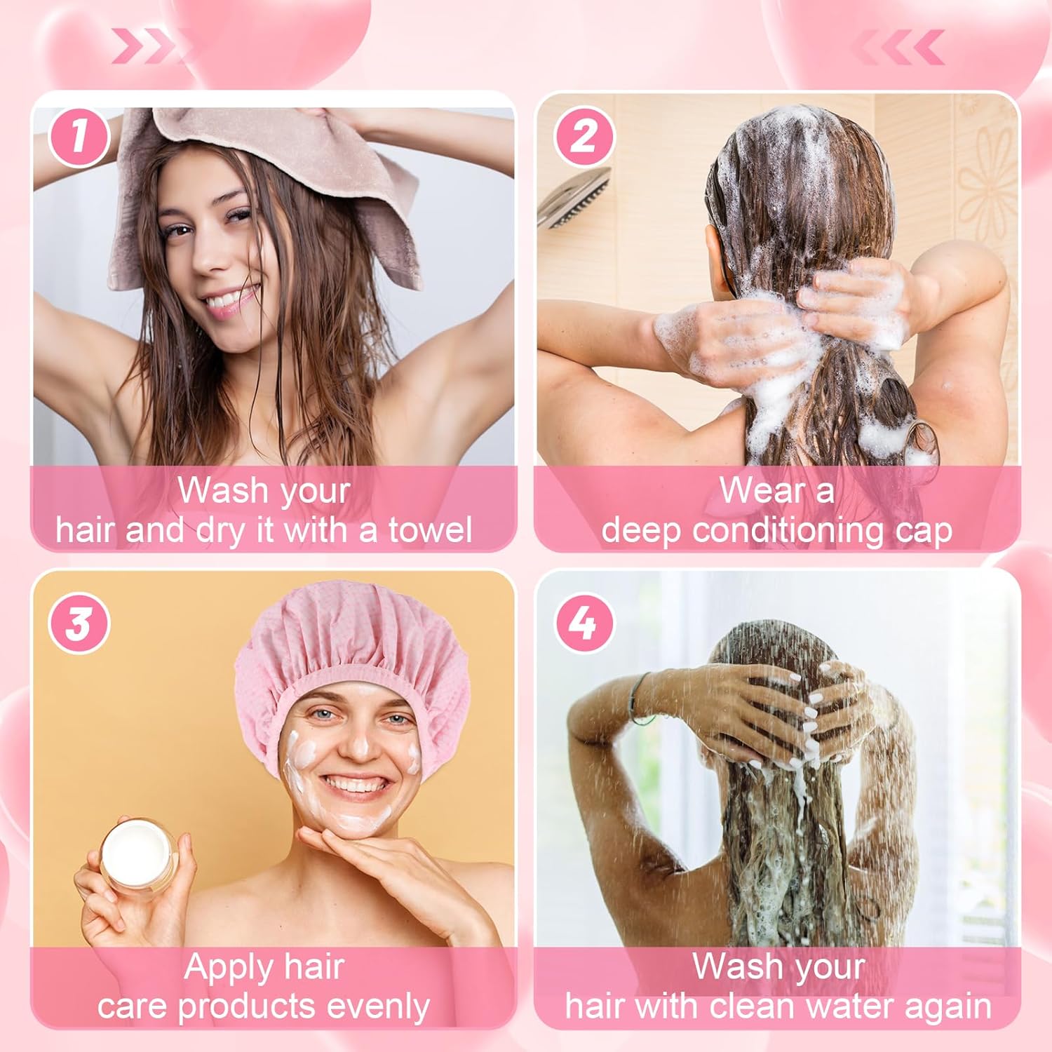 2 Pcs Pink Series Deep Conditioning Hot Oil Hair Treatment Caps – Waterproof, Double Layer, Reusable Shower & Steam Caps