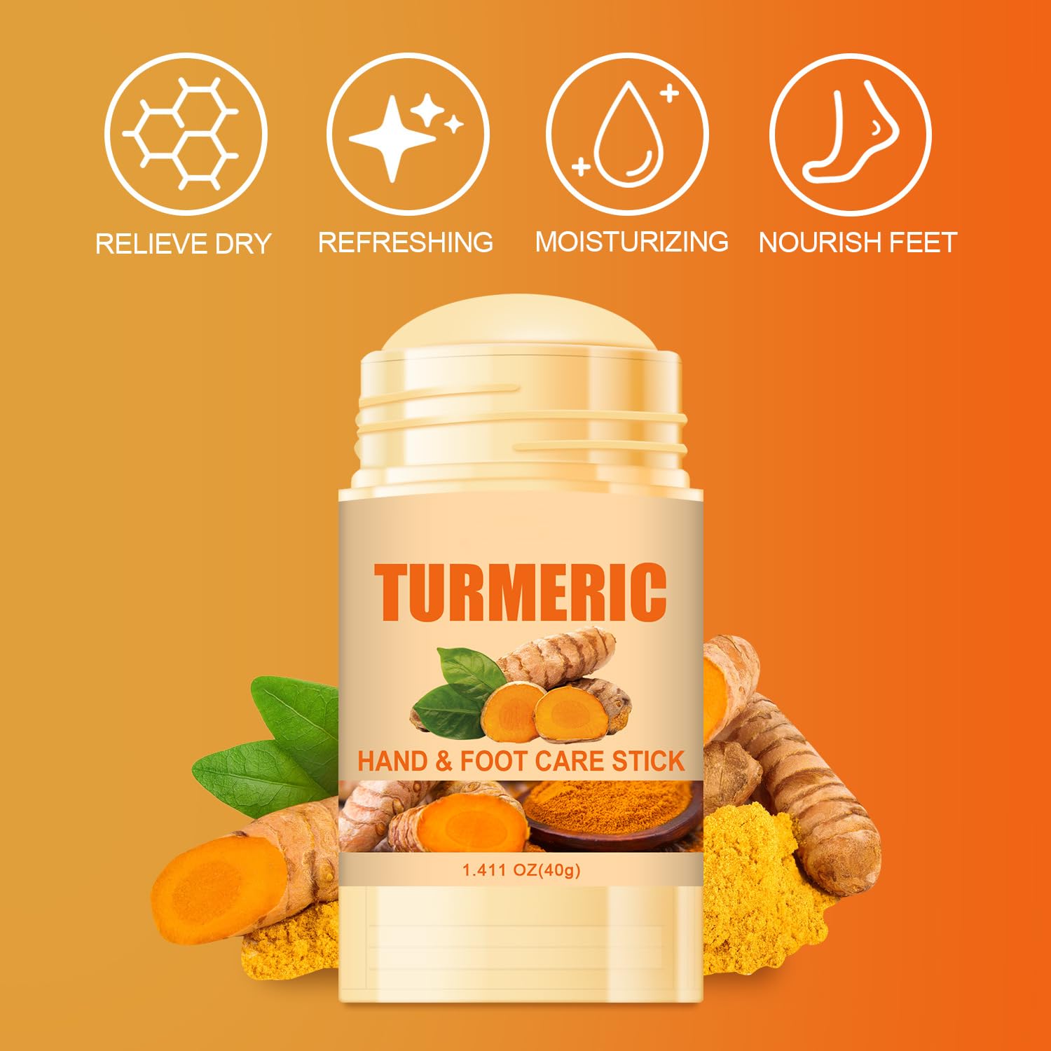【Turmeric Hand & Foot Care Stick】:Turmeric Hand & Foot Cream, specially formulated to relieve dry and cracked hands and feet, is made with a gentle formula that effectively moisturizes and repairs dry, chapped, rough and dead skin on hands and feet