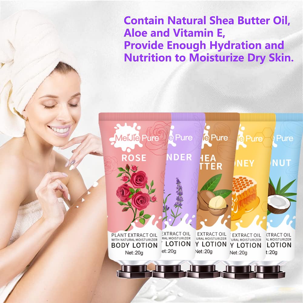 Travel Size Body Lotion:Easy to Carry for travel, tour, and outdoors. Perfect to carry everywhere and meet your moisturizing needs during the journey. The tubes are portable, making them easy to fit in your purse or bag