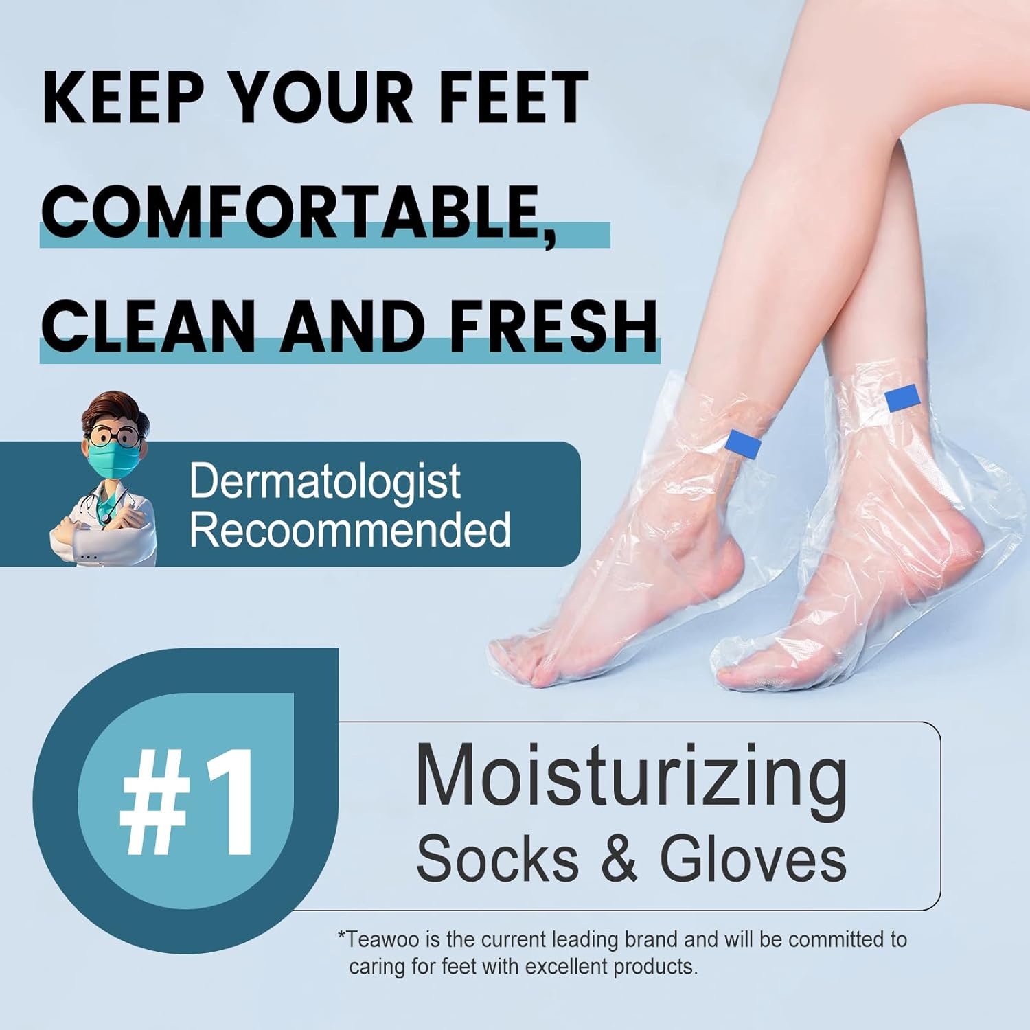 TEAWOO 200PCS Plastic Foot Covers for Feet, Leak-Proof Plastic Foot Masks for Moisturizing Feet, Pedicure & Foot Care, 200 Stickers for Snug Closure Included (Fits up USA 9)