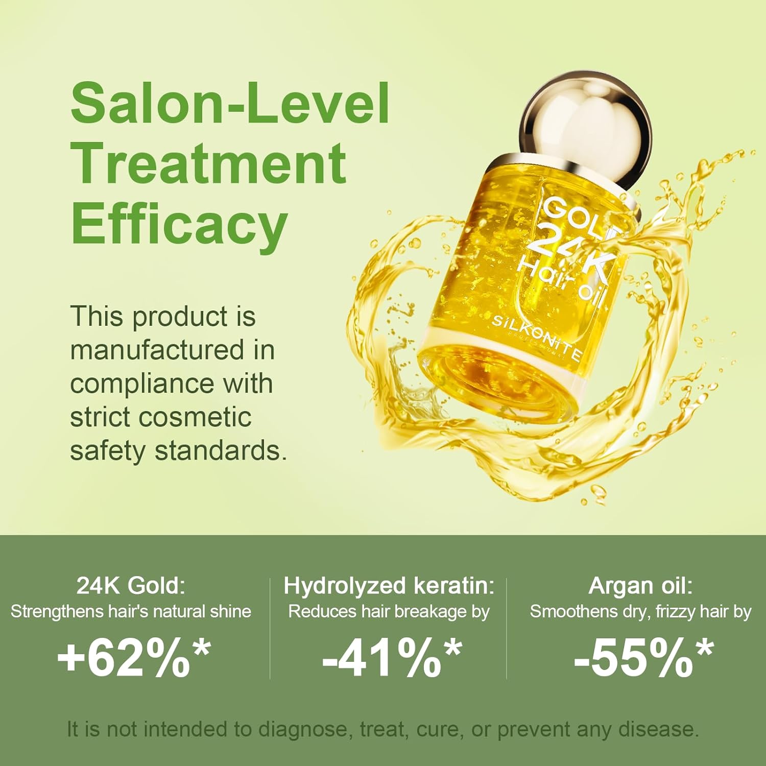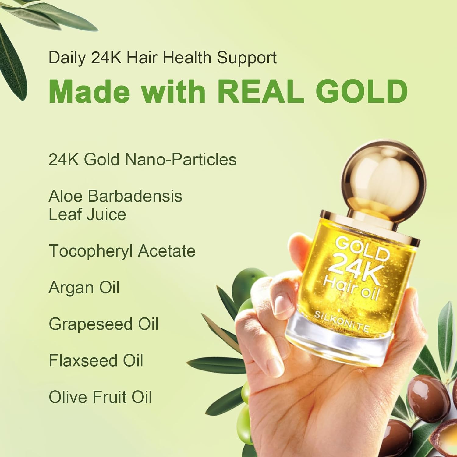 24K Gold & Argan Oil: Infused with real 24K gold and argan hair oil helps seal in nutrients and add shine to locks, leaving your hair silky smooth