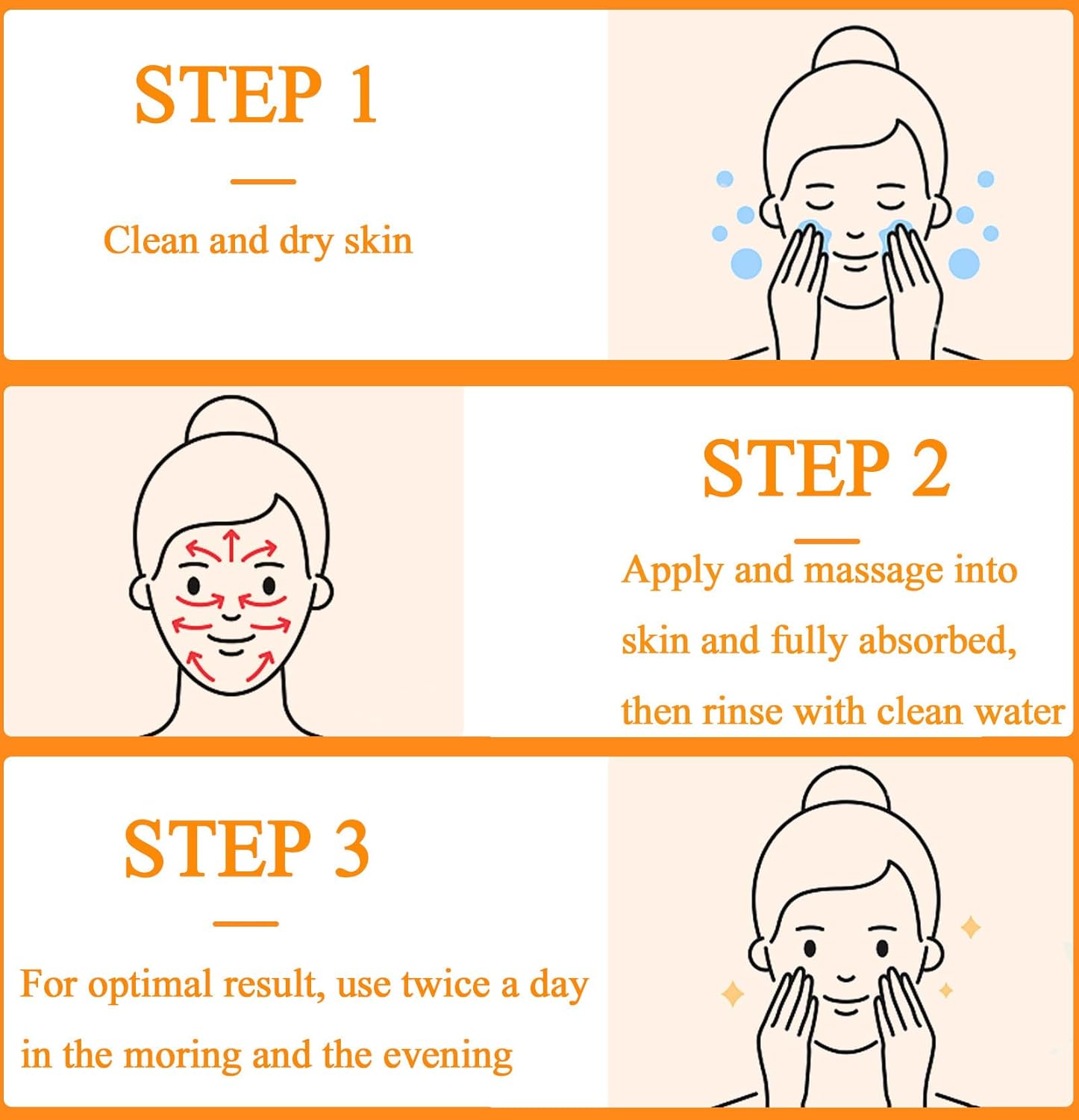 Deep Cleansing Moisturizing Facial Exfoliator: For optimal results, it is recommended to use the orange exfoliating gel continuously for a month. Use it in the morning and evening after cleansing the skin for best effects