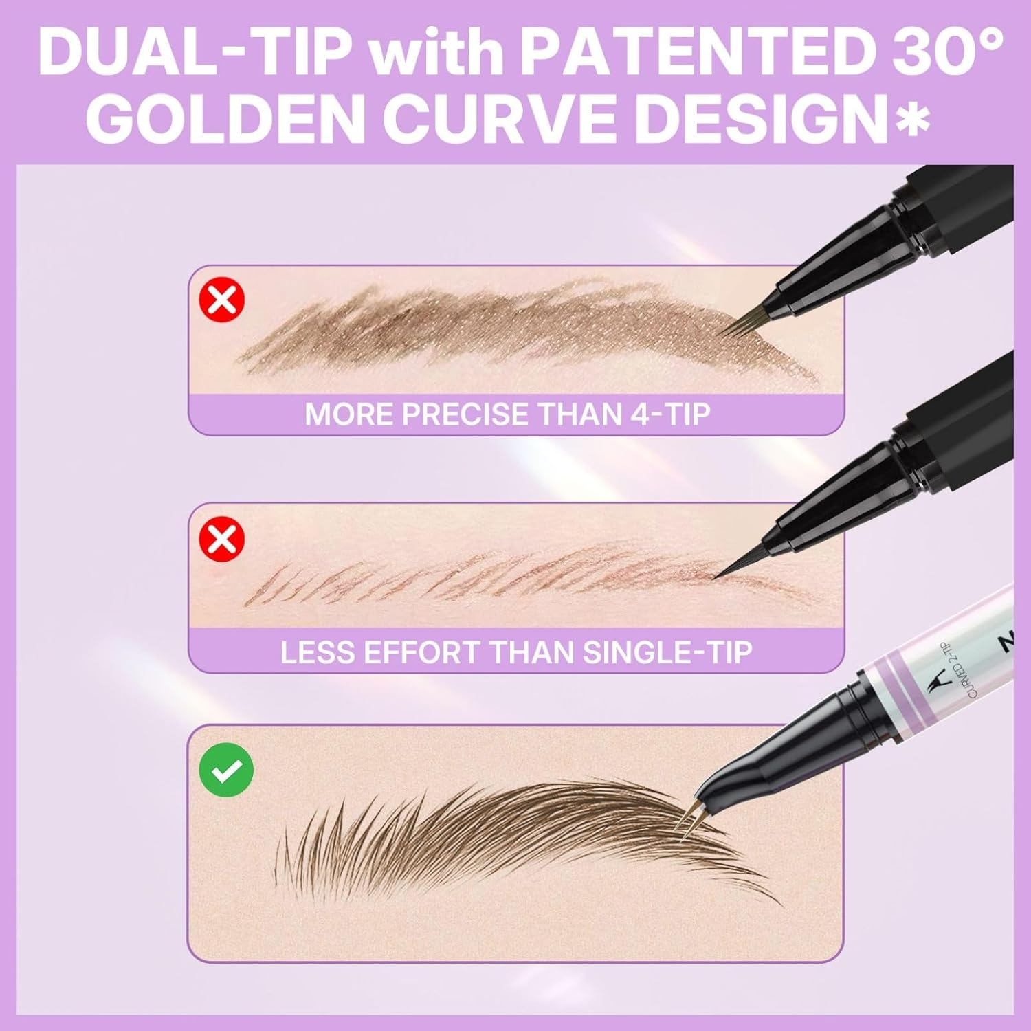 Waterproof and Smudge-Resistant: Our long lasting eyebrow pen maintains brow shape in rain, summer humidity, or winter conditions. Advanced formula resists sweat and moisture, worry-free for all-day wear