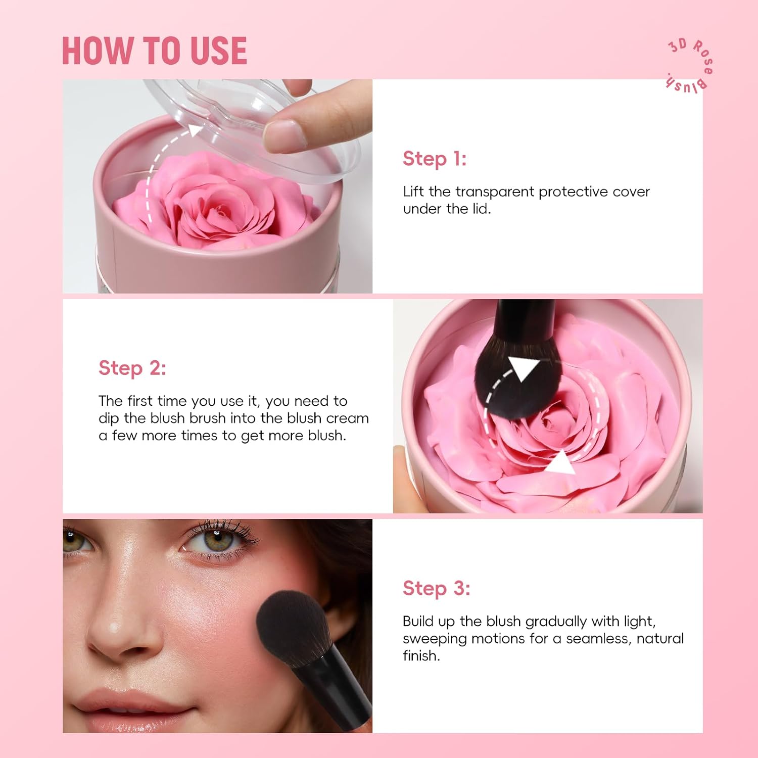 Smooth & Lightweight: The texture is creamy and smooth to achieve a seamless blending into the skin, plumping the cheeks for a youthful glow. For first time use, we recommend using the blush brush that comes with it to take in the powder with multiple circular motions