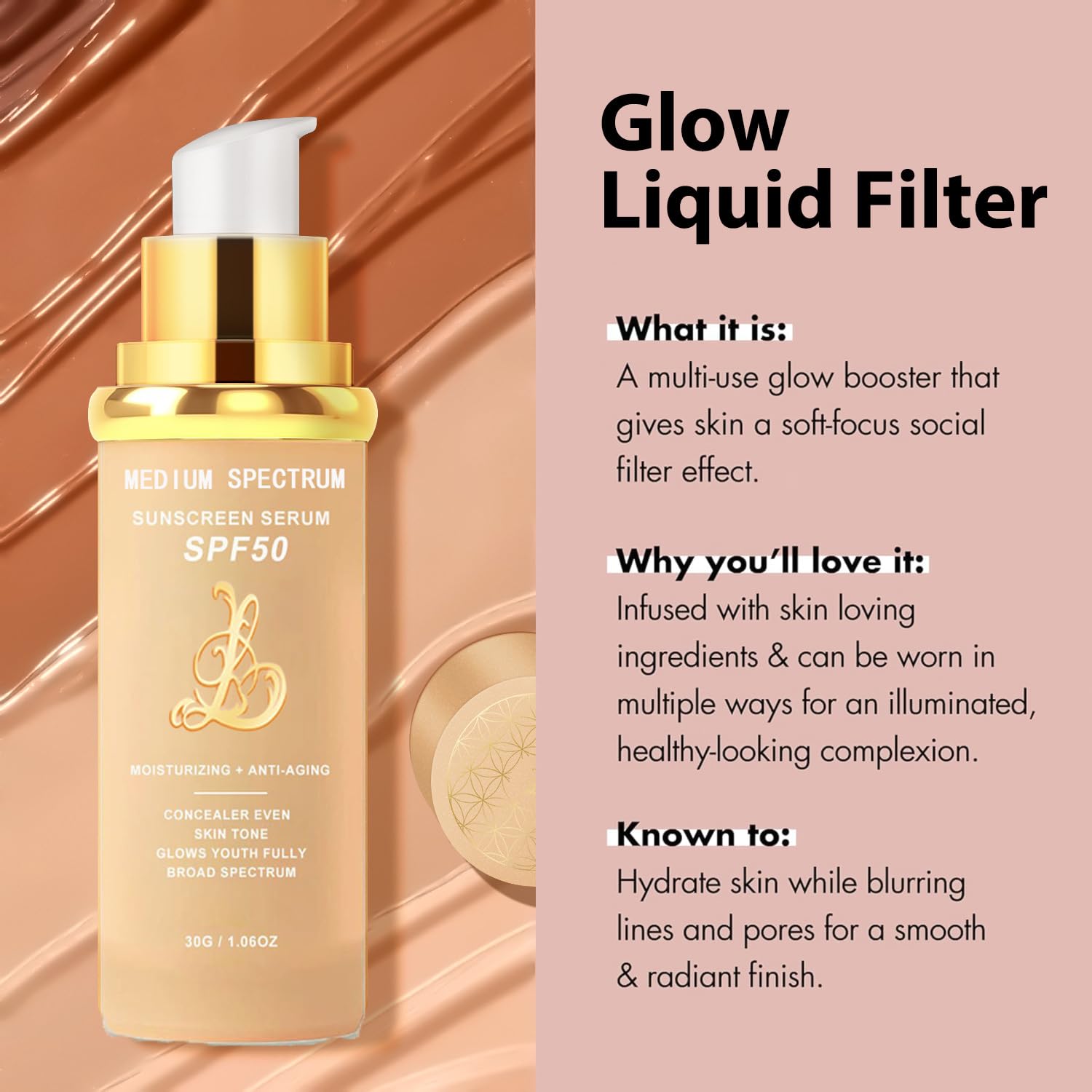4-IN-1 MULTITASKING FOUNDATION: This innovative liquid foundation combines the benefits of foundation, concealer, moisturizer and SPF 50 sunscreen in one easy step. The self-adjusting formula adapts to your skin tone for a perfect natural match with demi-matte finish that lasts all day.
