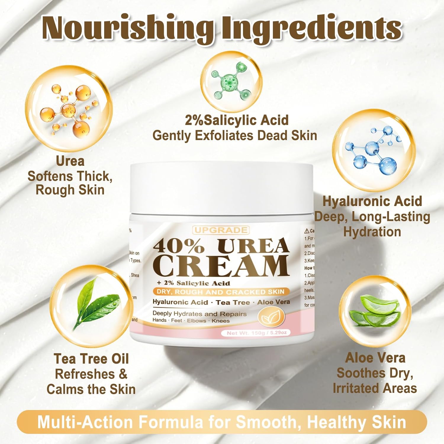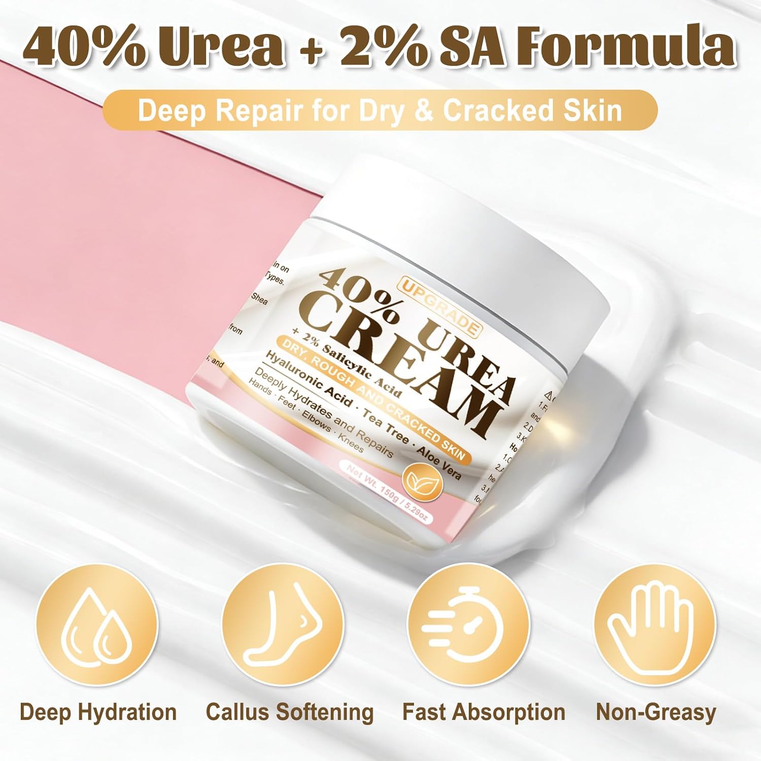 【40% Urea Power for Deep Softening】This maximum-strength 40% urea cream, enriched with deep-penetrating moisturizers, softens thick, dry skin on heels and feet while improving overall texture. Designed to loosen rough layers quickly, it works effectively as a foot cream for dry cracked heels and feet and delivers visible results within days. Ideal for those needing reliable urea cream 40 percent daily care