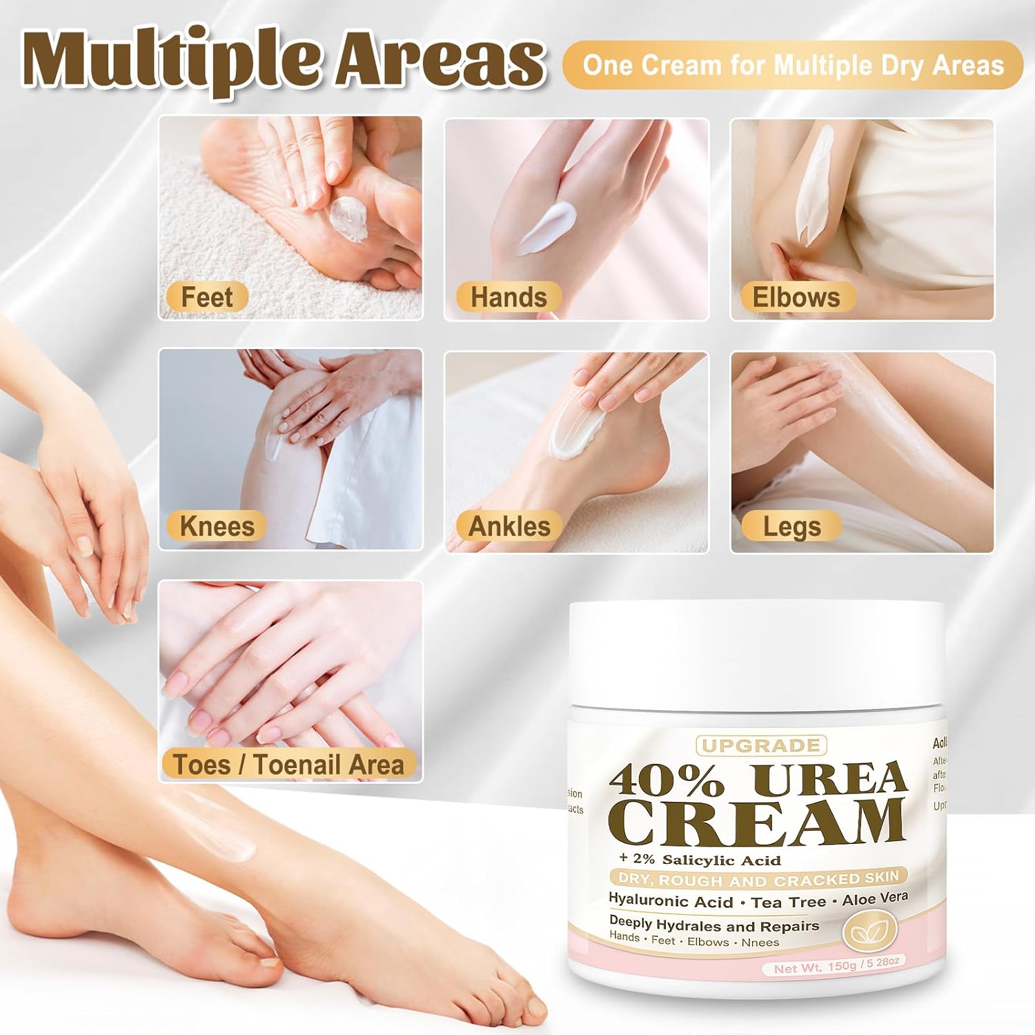 【Multi-Area Hydration for Feet, Hands & Body】This versatile urea foot cream works not only on heels but also on elbows, knees, hands, and other rough spots. It helps refine texture and soften thickened skin, making it an ideal urea moisturizer for daily routines. Whether used on the body or feet, this urea cream for feet delivers long-lasting hydration for smooth, renewed skin