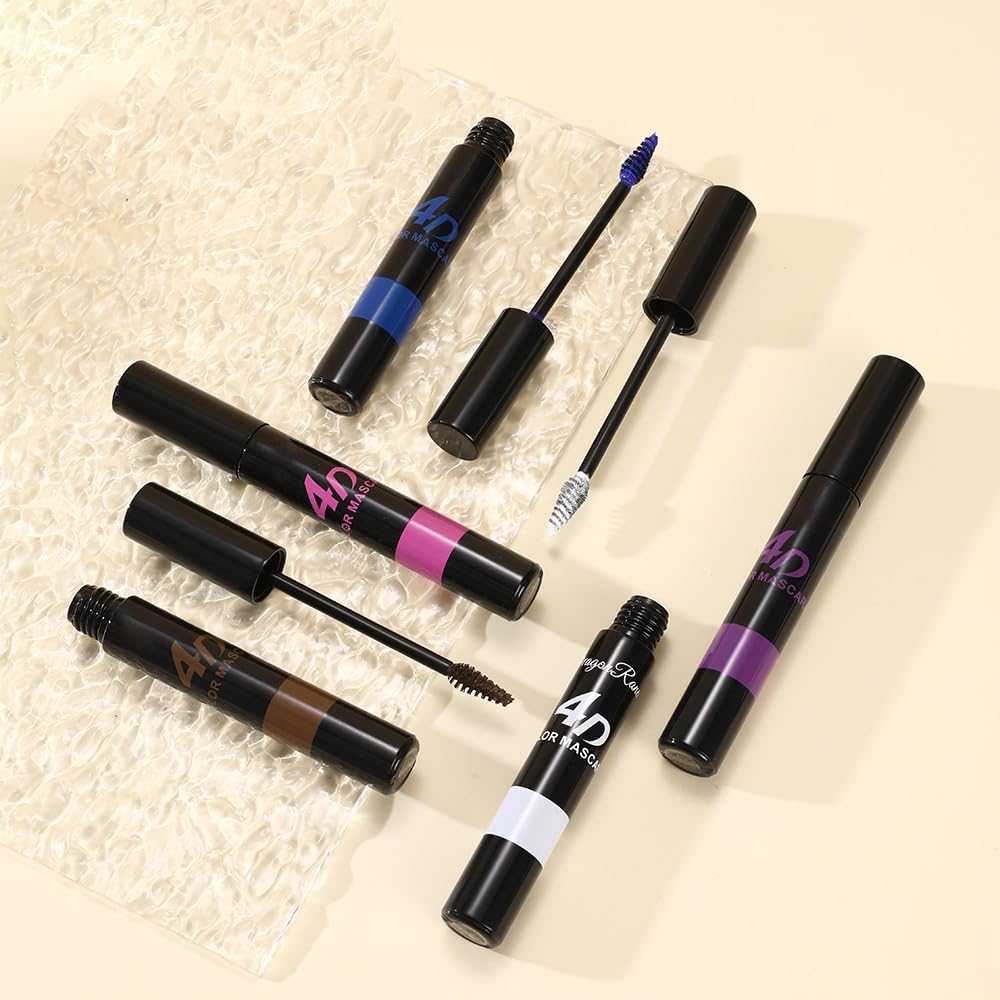 Multiple options: This 4D mascara has six color options, covering regular colors, purple, white, red, black, blue, brown, high pigment, 4D effect color shades, which can effectively create bold, fashionable and creative tones. The spiral brush head fits the eyelashes very effectively and conveniently creating colorful, long, curly, three-dimensional beautiful eyelashes, shaping eyelashes that suit your mood.