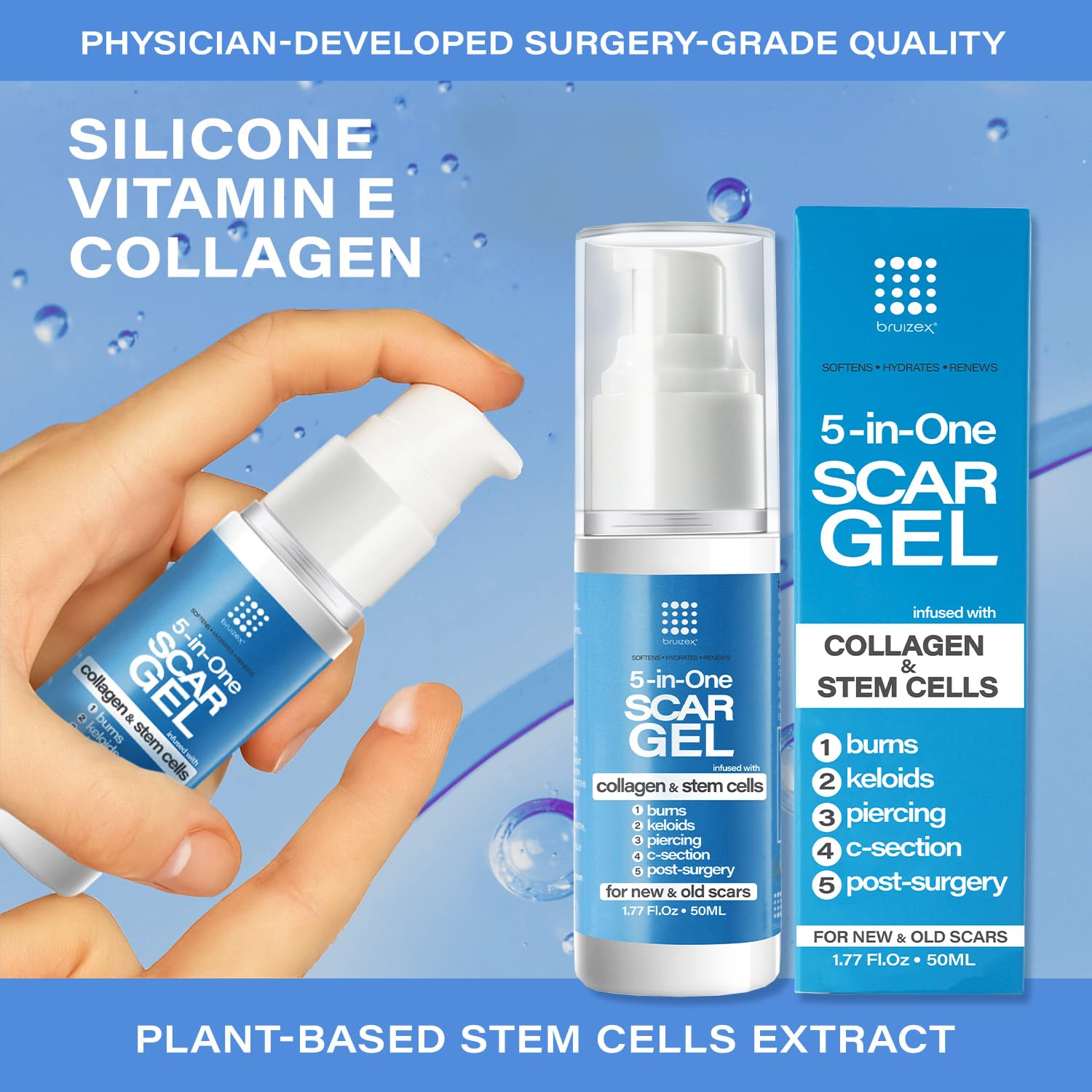 SUPERIOR SCAR TREATMENT: Our 5-In-One Scar Gel stands out as the first-ever scar treatment to synergistically combine SILICONE, COLLAGEN, and STEM CELL extracts. Silicone creates a protective barrier, fostering a moist healing environment, while collagen works to rebuild the skin’s structural integrity. Stem cells enhance rejuvenation of skin tissues. Together, these ingredients ensure unmatched efficacy in healing and improving the appearance of scars, setting a new standard in skin repair.
