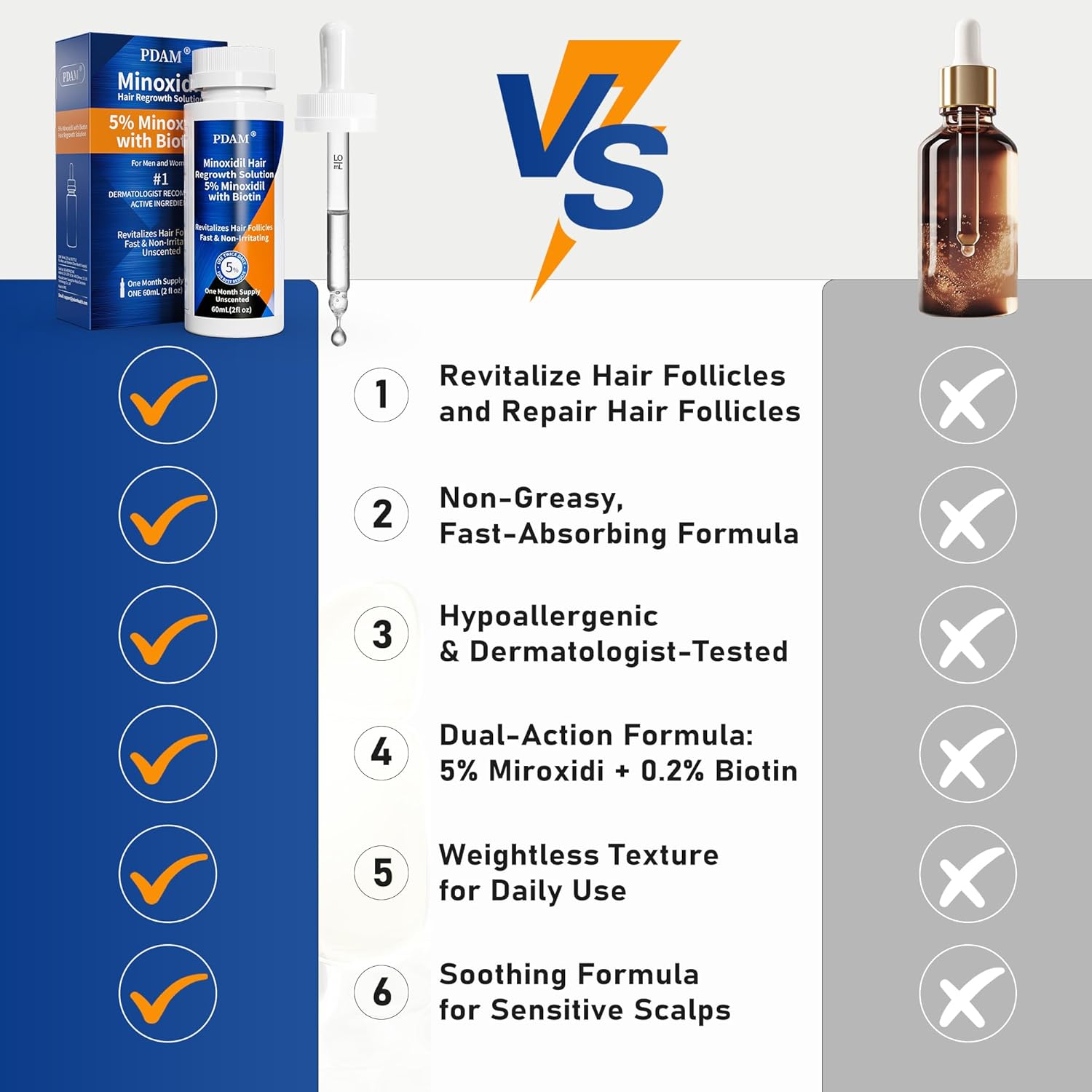 Powerful 5% Minoxidil Formula for Hair Growth: Formulated with 5% minoxidil, this advanced treatment helps reactivate dormant hair follicles and improve scalp circulation to combat hair thinning. Clinically proven and dermatologist-recommended, it supports visible hair regrowth for men and fuller hair growth for women. A trusted solution for hair loss treatments for men and hair loss treatments for women who want stronger, denser hair.