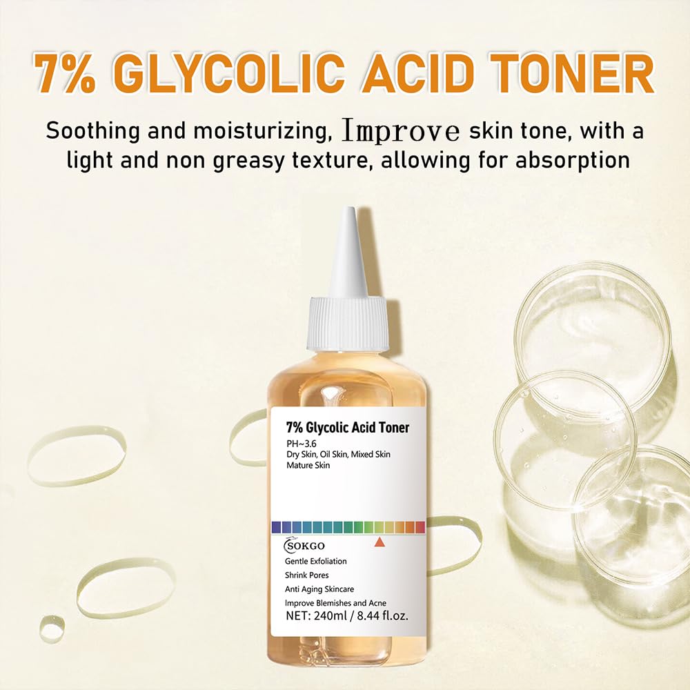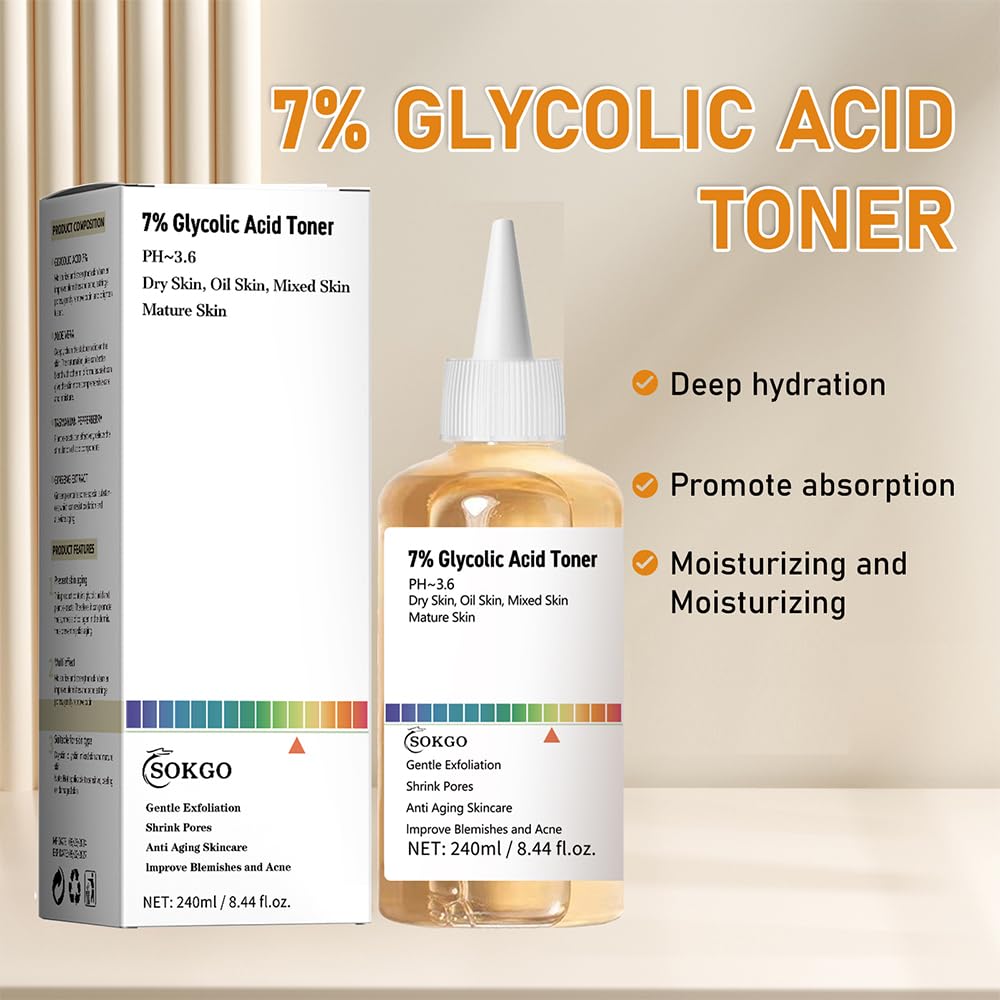 Soothes and Hydrates: Designed with a hydrating formula, the 7% Glycolic Acid Toner not only soothes skin irritation but also delivers essential moisture, leaving your skin feeling refreshed and comfortable.