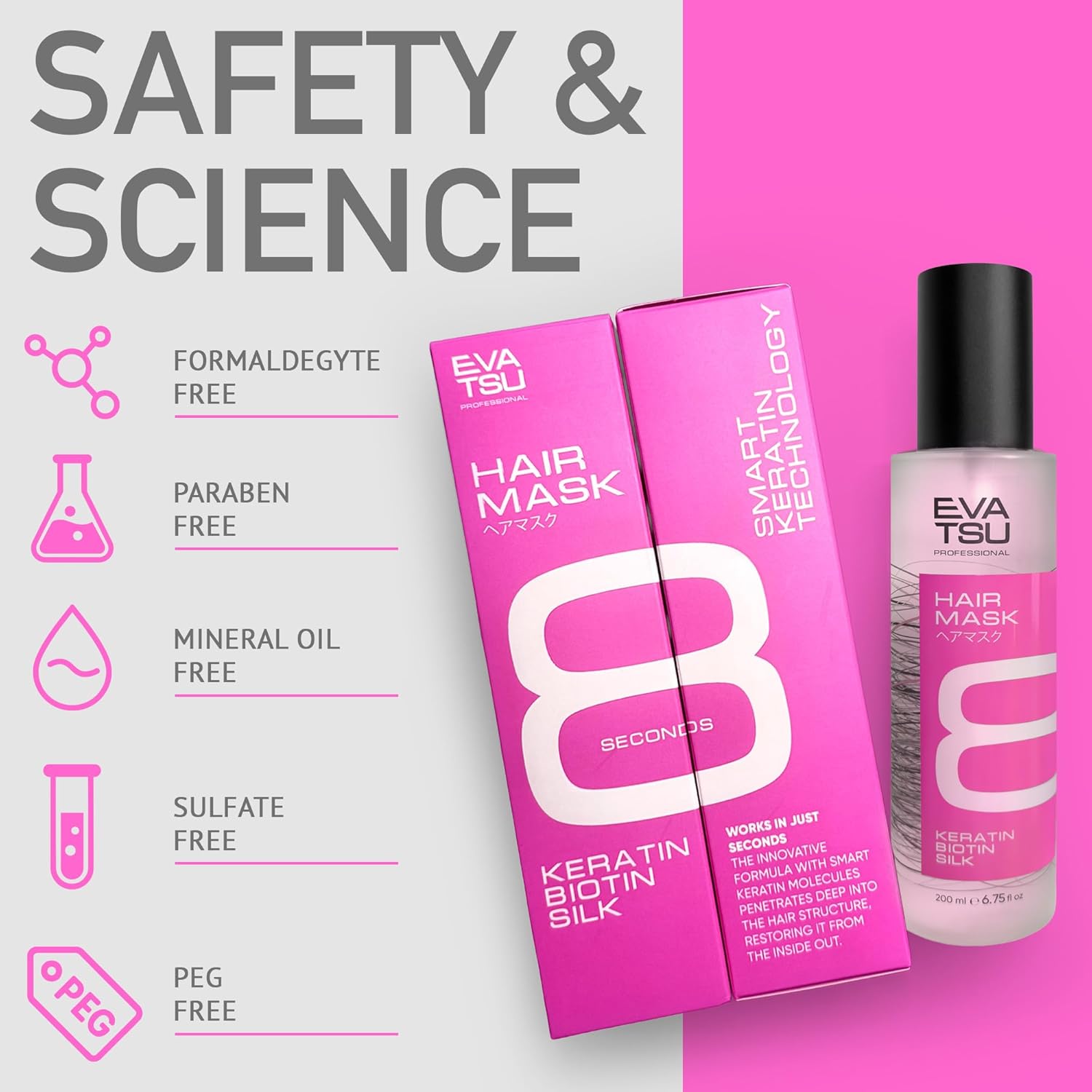 SMART KERATIN 8-SECOND RINSE-OUT MASK SPRAY – Instant-repair, hydrating mask crafted with Japanese salon-grade innovation. Smart keratin molecules locate internal damage and restore from within, delivering deep moisturizing nourishment and lightweight hydration exactly where needed.