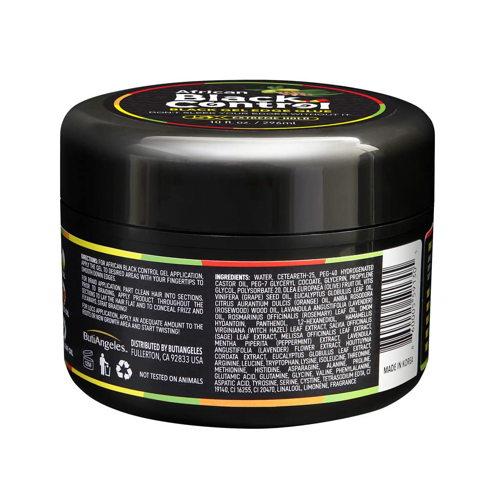 DIRECTIONS: For African Black Control gel application, apply the gel to desired areas with your fingertips to smooth down edges. For Braid application, part clean hair into sections. Prior to braiding, apply product throughout the sections to lay the hair flat and to conceal frizz and flyaways. Strat braiding! For locs application, apply an adequate amount to the roots or new growth area and start twisting!
