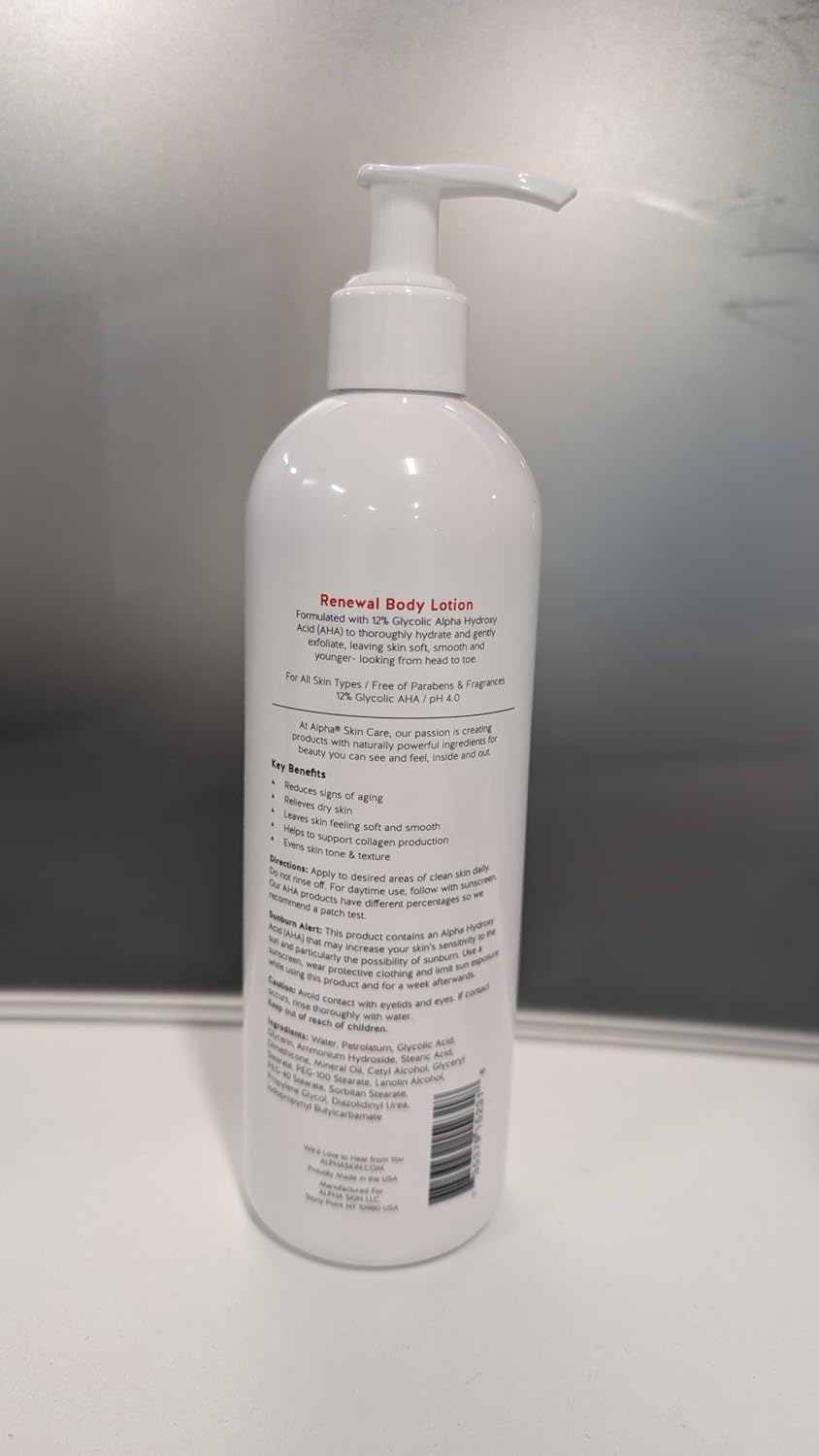 Alpha Skin Care Revitalizing Body Lotion, 12% Glycolic AHA, Simple & Effective Daily Moisturizer with Alpha Hydroxy Acid, Hydrates & Exfoliates for Soft, Smooth Skin, Anti-Aging