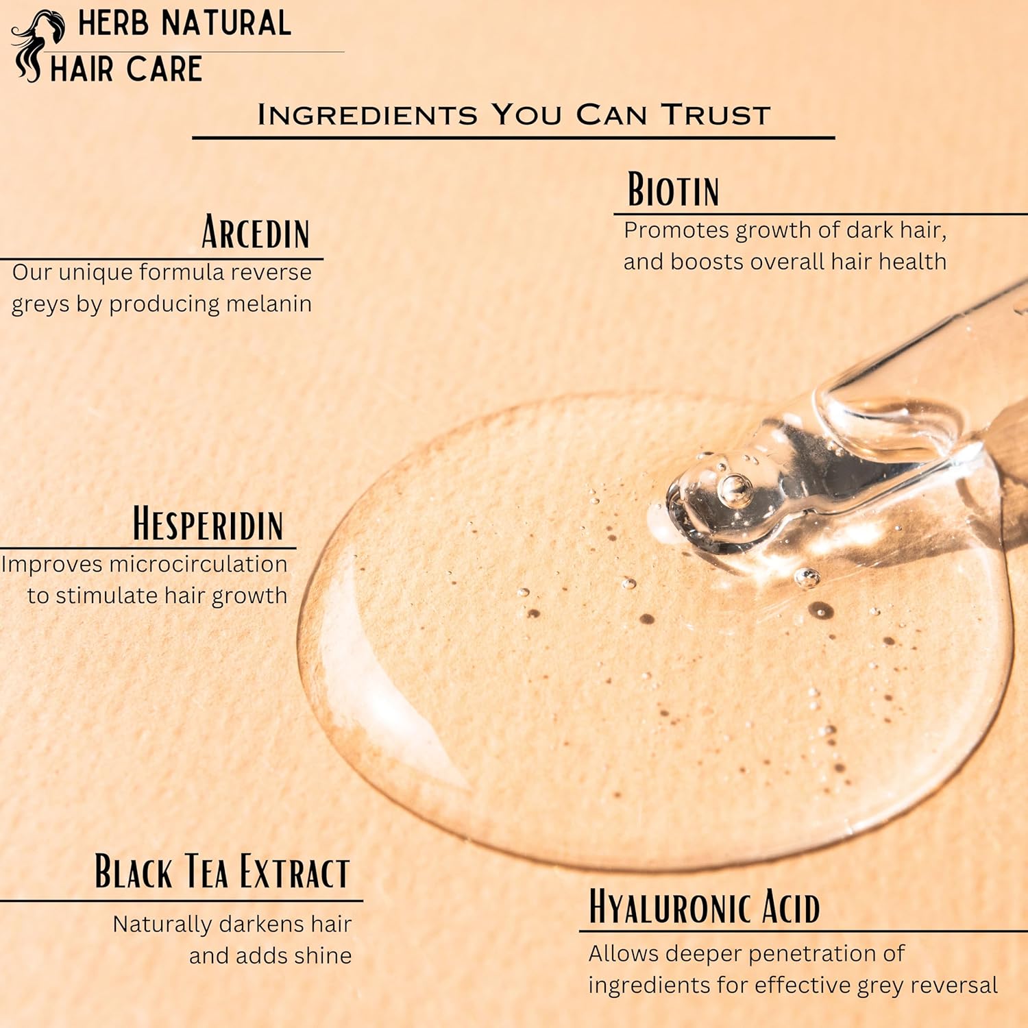 NATURAL DARKENING: Plant-based Arcolys and Black Tea Extract stimulate the repigmentation of grey strands by promoting melanin production in the roots for natural-looking hair colour. The serum is safe and delivers long-lasting results, unlike harmful artificial hair dyes that ultimately ruin your hair and create the inconvenience of regular hair color appointments.
