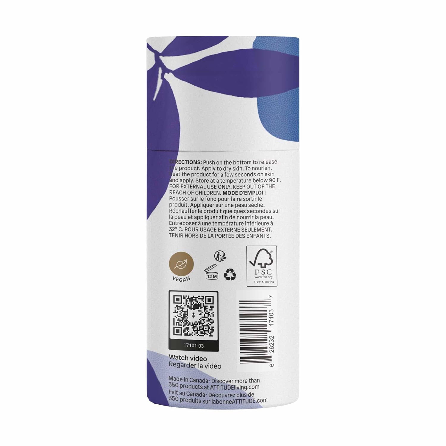Elevate your self-care routine with the solid ATTITUDE Body Butter – Sea Salt. Dermatologically tested, this nourishing body butter is made with 99% natural origin ingredients*, including jojoba oil, which helps maintain skin hydration and leaves it soft to the touch. Enriched with shea butter, this EWG Verified stick glides smoothly onto the skin, providing a rich texture ideal for cold weather. Designed to minimize plastics use, this solid care product is perfect for travel, easily fitting into your handbag or suitcase. Use your favorite care product wherever you are, and enjoy soft, glowing skin as well as the warm and comforting scent of sandalwood. *According to ISO 16128 standard.