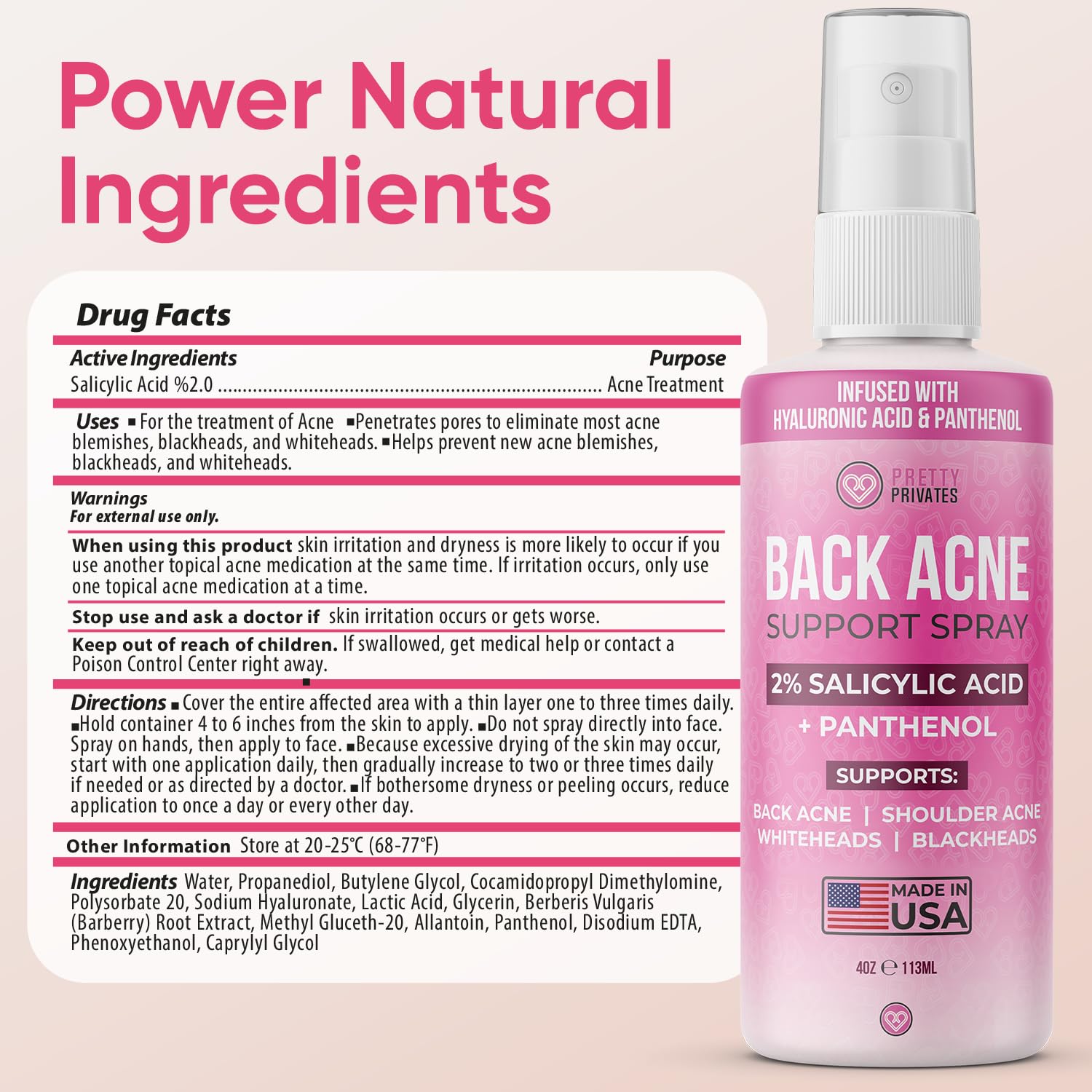 Targets & Reduces Back Acne – Effectively treats body acne with 2% salicylic acid in this acne body spray, serving as an effective body acne treatment by unclogging pores and reducing redness, bumps, and blemishes on the back and chest.