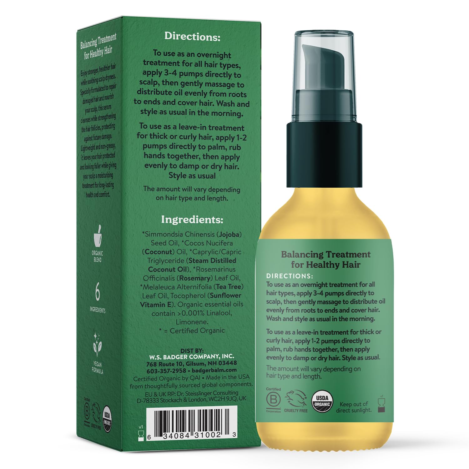 SUSTAINABLE HAIR & SCALP OIL: Badger Jojoba Hair Oil / Dry Scalp Oil is 100% organic, vegan, cruelty free, chemical free & made with 100% solar power in the USA by a family owned company
