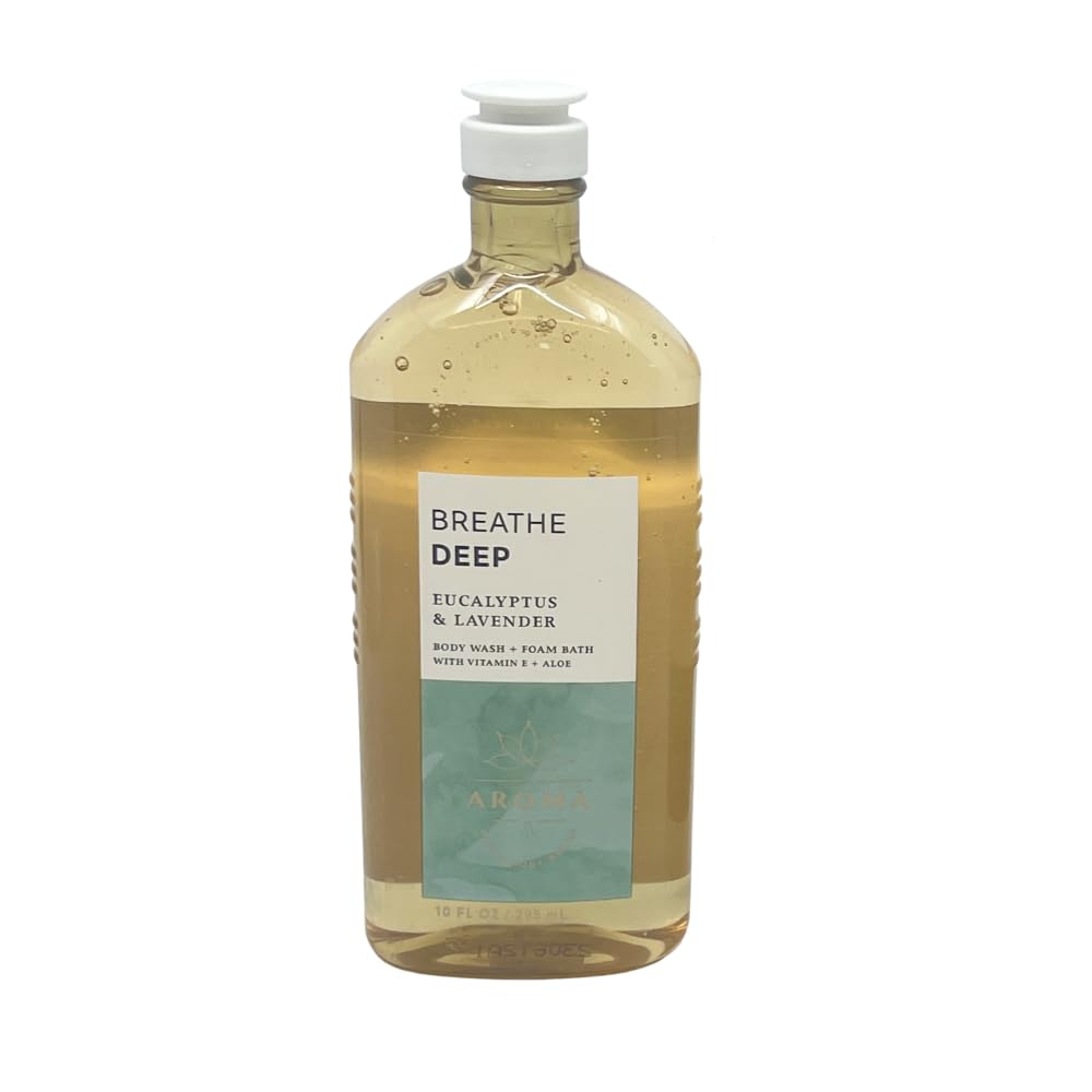 Bath & Body Works Deep Breathe Eucalyptus & Lavender Body Wash – made with Vitamin E and Aloe that gently nourishes without drying and leaves the skin feeling clean and refreshed.
