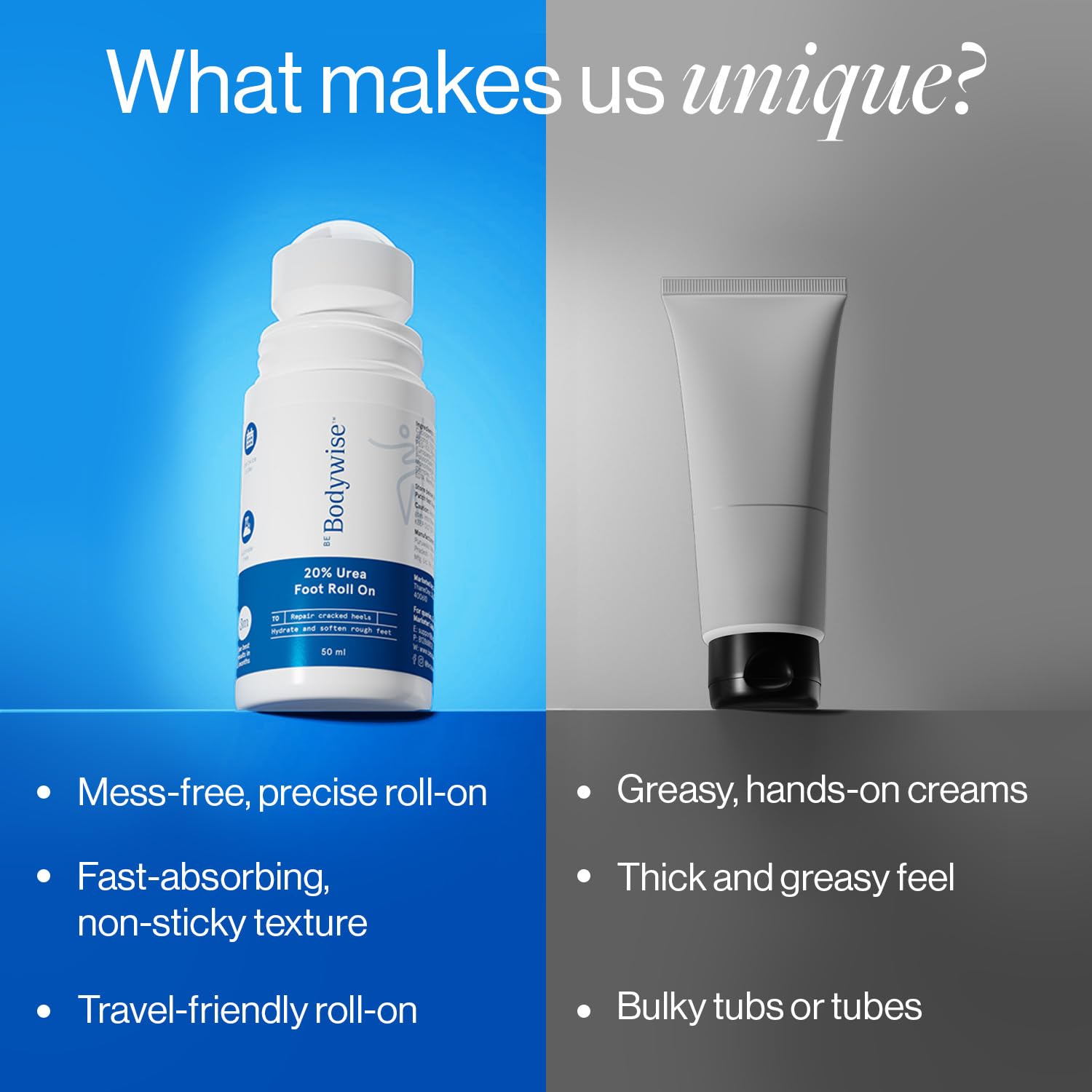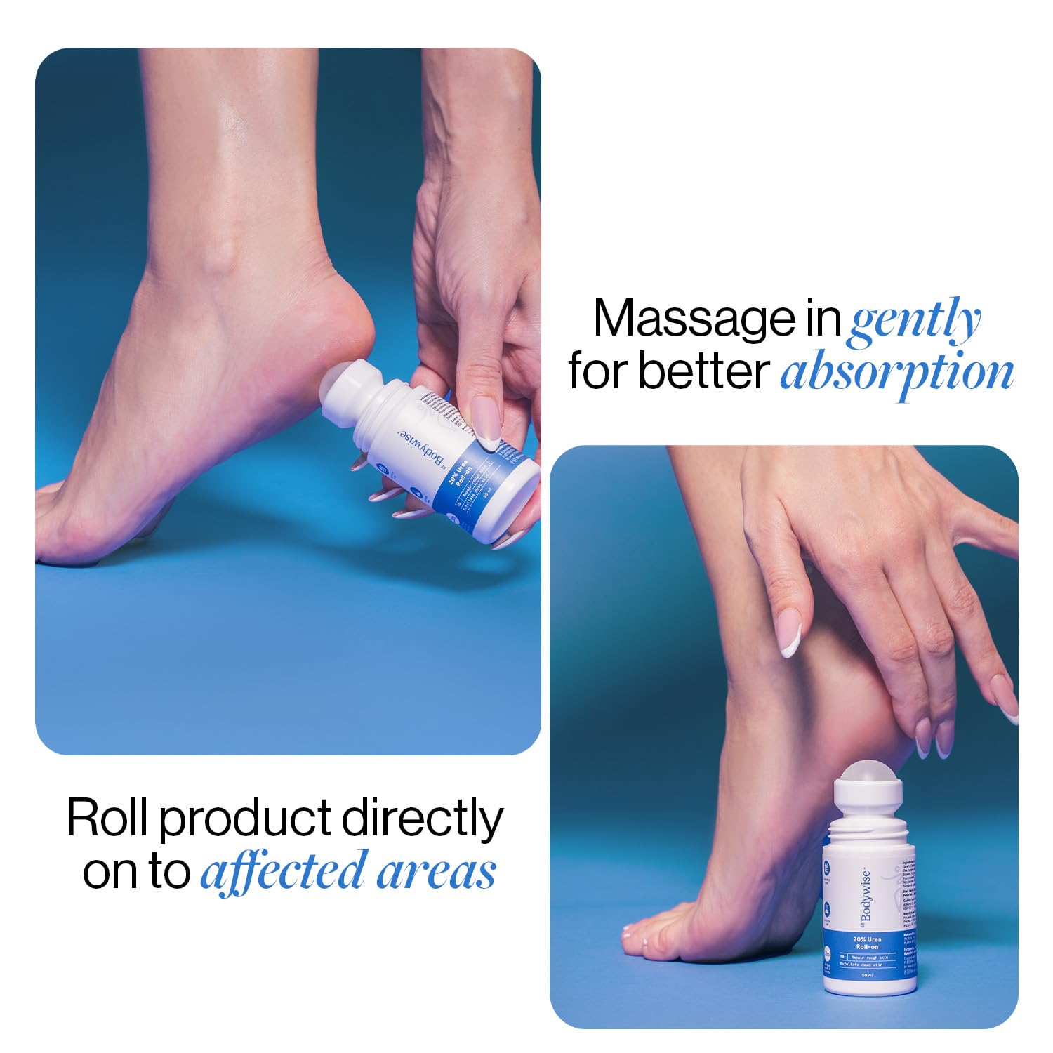 Be Bodywise Foot Cream Roll-On. Repairs and Moisturises Dry, Cracked Heels and Feet. With Urea, Lactic Acid, Olive Oil & Vitamin E. 50ml.