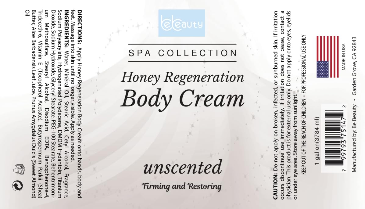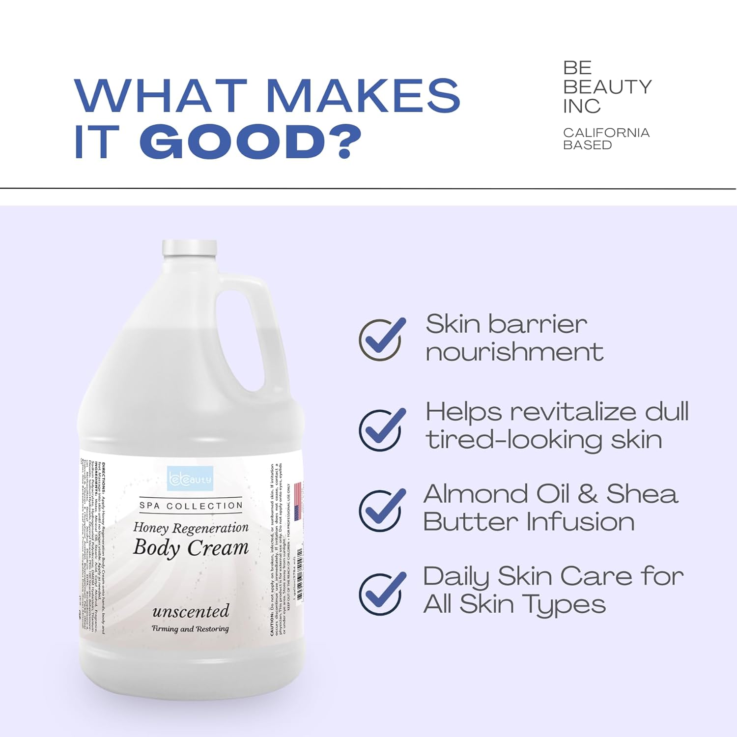 BeBeauty Unscented Honey Regeneration Body Cream Hydrating & Nourishing Fragrance-Free Body Lotion for Smooth, Soft, Sensitive Skin 1 Gallon