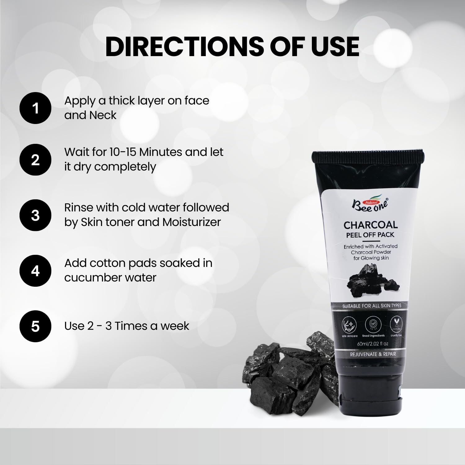 BEE ONE Charcoal Peel-Off Face Mask – 60ml/2.02oz Skin Cleaner for Men & Women Suitable for All Skin Types