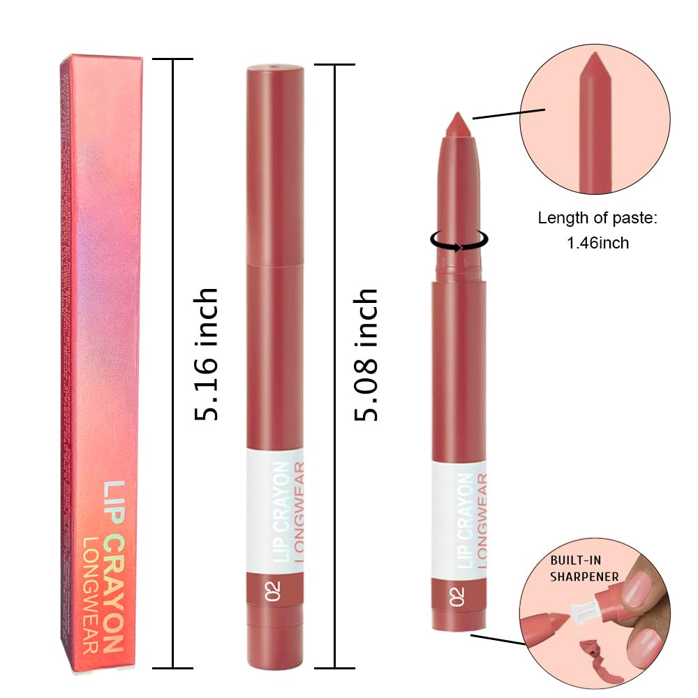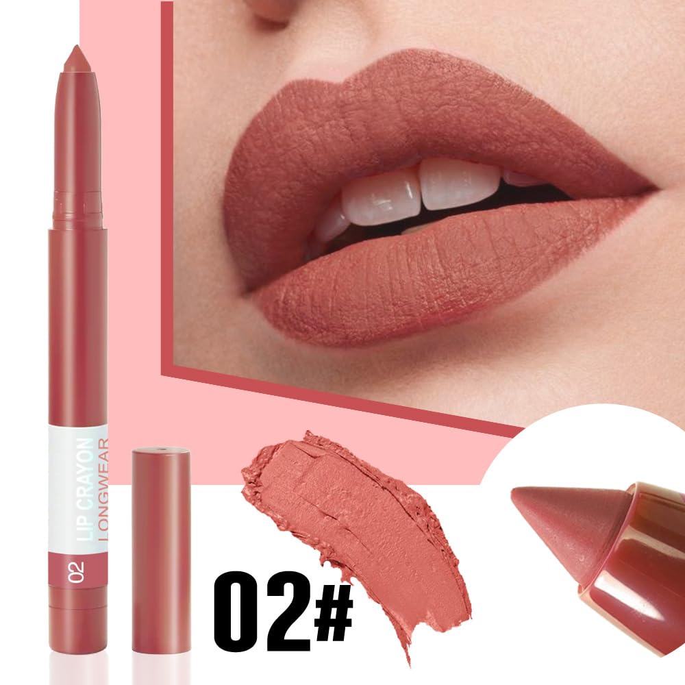 ★【Flattering Lipstick & Liner 】02#Mauve Nude Pink-This versatile lip color glides on smoothly to enhance any skin tone, with a range of shades for every mood and occasion. The built-in sharpener keeps the tip ultra-precise, allowing effortless application as both lipstick and liner.