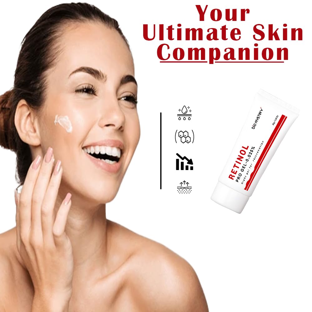 Bio Mystery Retinol Gel 0.025 can help reduce the appearance of fine lines, wrinkles, age spots. promotes production, which can lead to smoother and more youthful-looking Face.