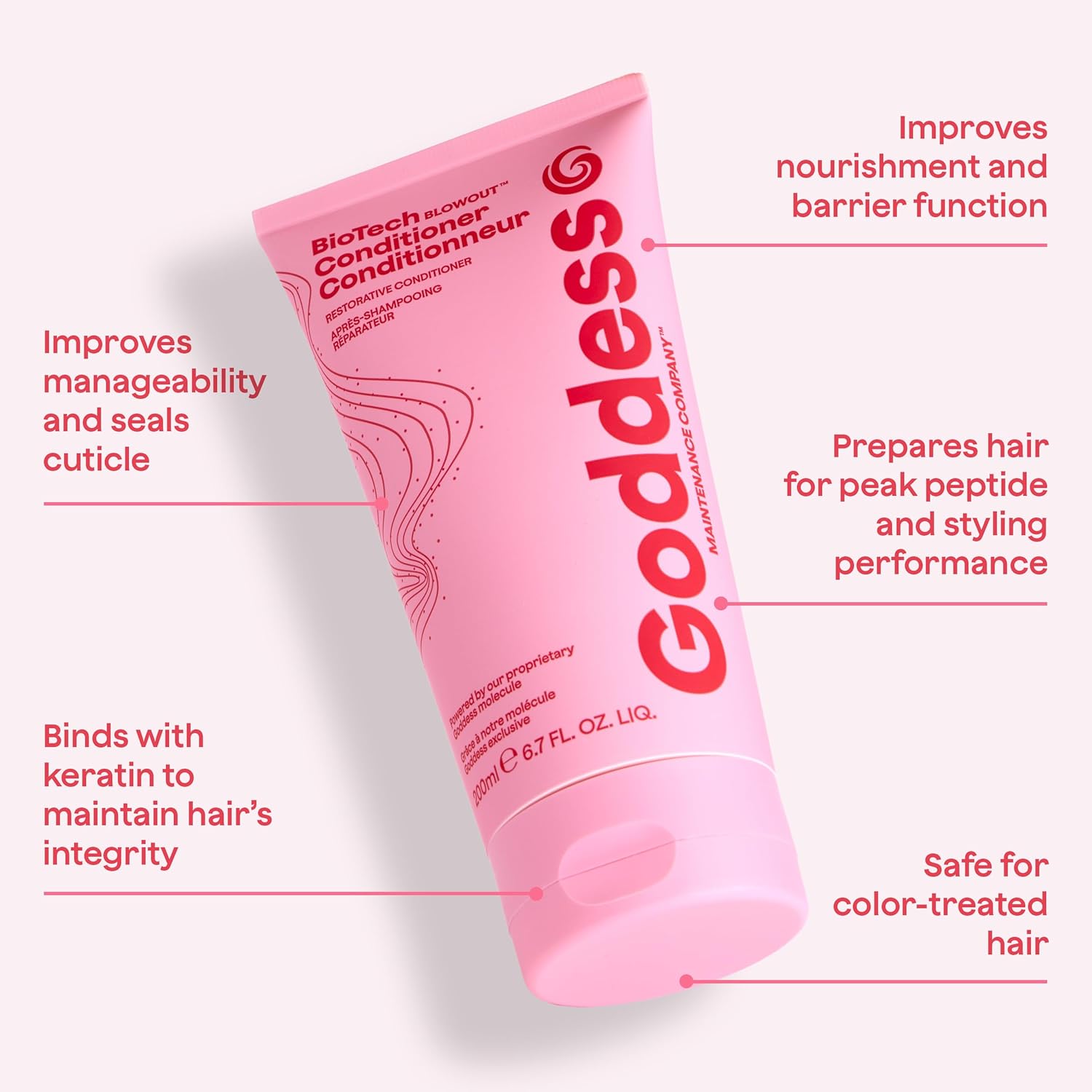 Biotech Blowout Restorative Conditioner restores and replenishes essential hair lipids that help maintain softness, strength, and protection while leaving hair smooth and lightweight.