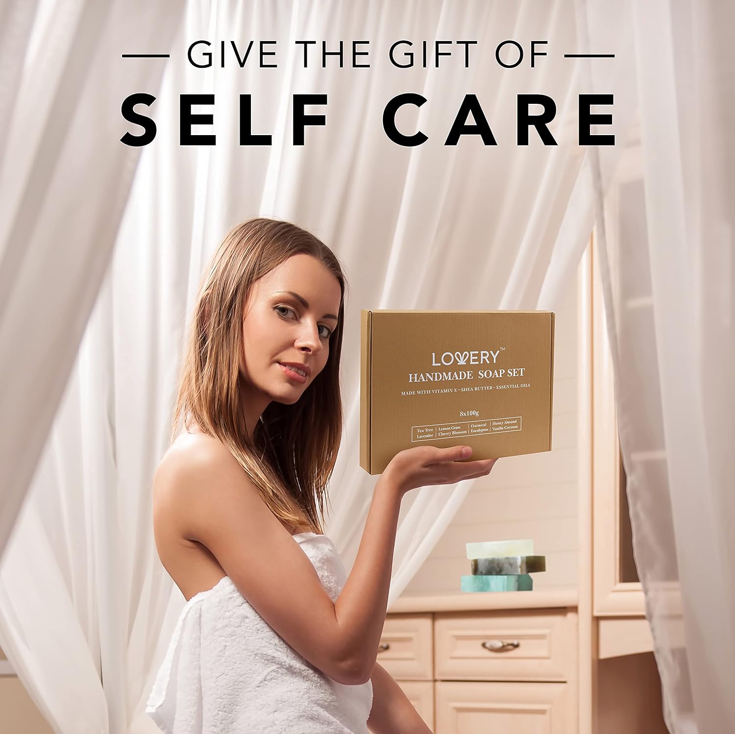 Birthday Gifts, Handmade Soap Set – 8 Piece Variety Pack Bath Soap Gift Box for Men, Women & Teens, Natural Scented Bar Soap for Face & Body with Vitamin E, Shea Butter and Essential Oils – 100g Ea