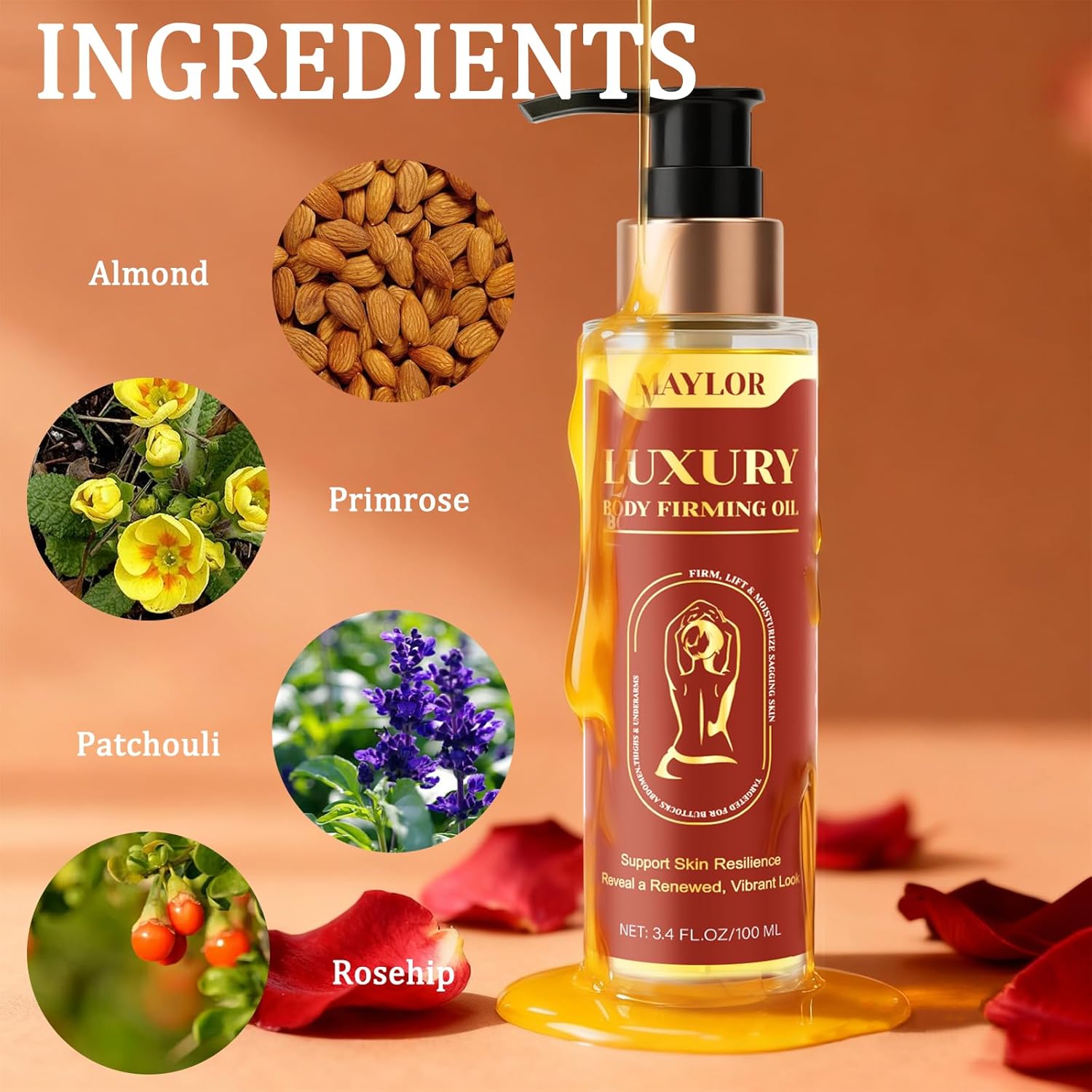 Visibly Firms & Lifts Skin – Our advanced body treatment oil is specially designed to help improve the appearance of skin’s firmness and elasticity. It works to tone and tighten the look of loose, crepey skin on common concern areas like arms, abdomen, and thighs, contributing to a more sculpted and lifted appearance.