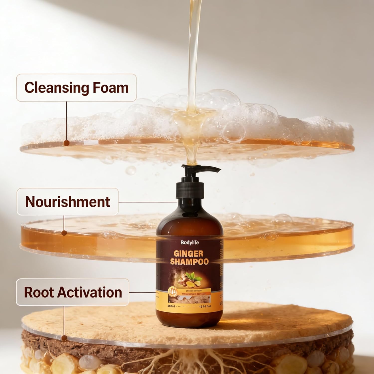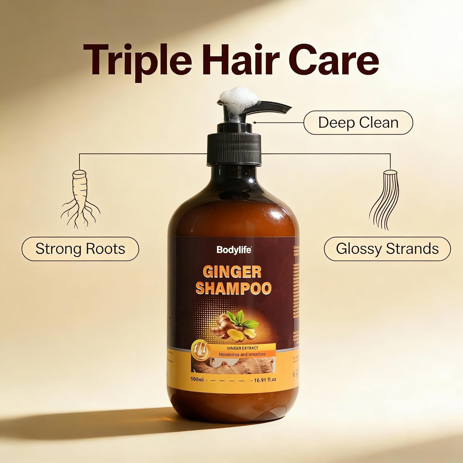 Bodylife Ginger Shampoo for Dandruff Hair, Anti-Dandruff Treatment – Itchy Dry Scalp Care Shampoo Ginger Extract Oil Strengthen Hair Formula, for Men and Women 16.91oz