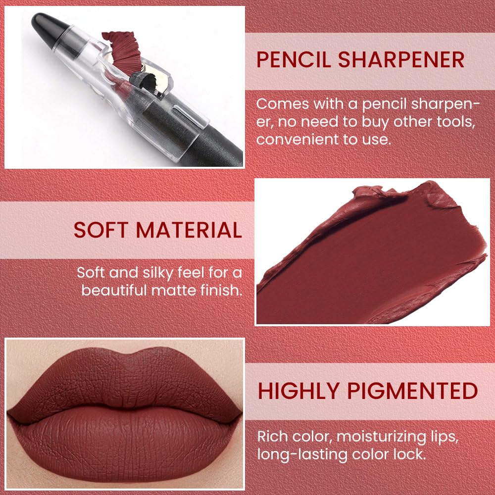 【20 Colors Silky Velvet Crayon lip liner】Theincludes 20 colors lip liner. It can also be used as a lipstick, With pencil sharpener Sharpenable Lip Pencil, Pucker up and flaunt your pout with our vegan eco friendly lip crayon, Matte lipstick crayon gives you the best of both worlds the precision of a lip liner pencil and the smooth application everyone loves, This lightweight, streak-proof lip crayon offers one-swipe full coverage providing up to 12 hours of bold, smudge-proof wear