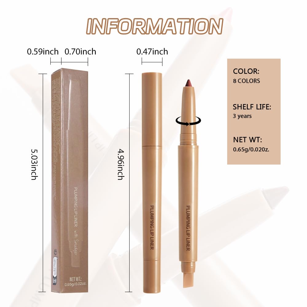 【Precision and Longevity Dual-Ended Lip Liner】This lip liner With Silicone Smudger boasts a creamy texture that glides over your lips, ensuring a smooth application without tugging or pulling. The precision tip allows for impeccable definition, enabling you to contour and fill your lips with ease corners for plump lips