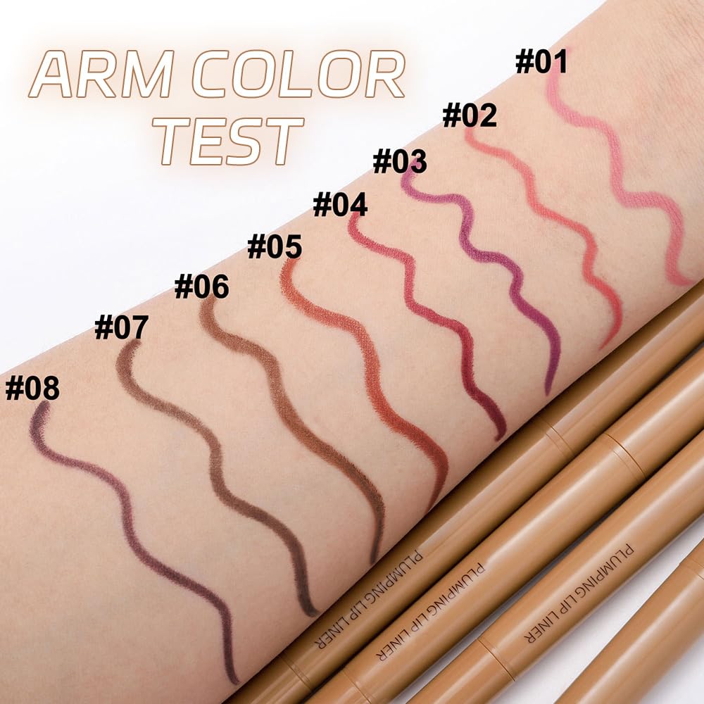 【Richly Colored Retracable Lip Liner】Available in 8 curated hues (Salmon Pink, Light Coral, Medium Violet Red, Fire Brick Red, Brownish Red, Chocolate, Saddle Brown, Maroon) our highly pigmented formula auto-adjusts to complement natural lip tones. Achieve professional-grade color saturation without salon appointments, offering both time efficiency and cost-effectiveness