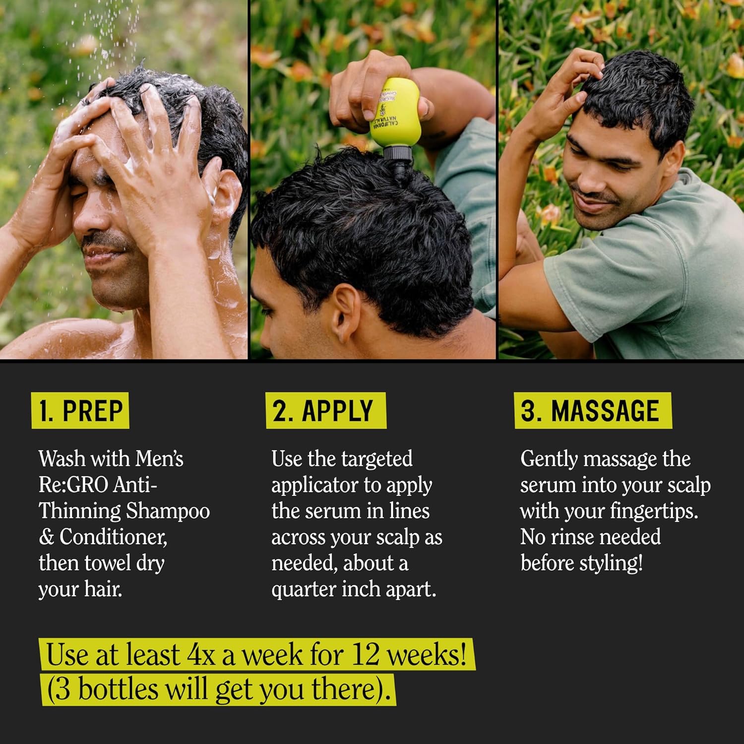 FOR BEST RESULTS: Incorporate Hair and Scalp Serum into your routine 4x per week for 12 weeks for best results. (3 bottles will get you there.)