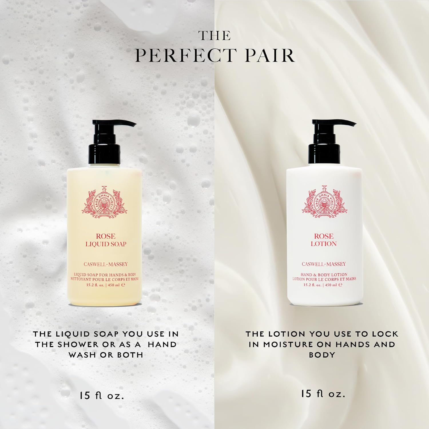 Caswell-Massey Rose Hand and Body Lotion for Dry Skin, Daily Moisturizing Lotion with Almond Oil, Shea Butter & Vitamin E, Fast-Absorbing Non-Greasy Hydrating Moisturizer, Pump Bottle 15.2 fl oz