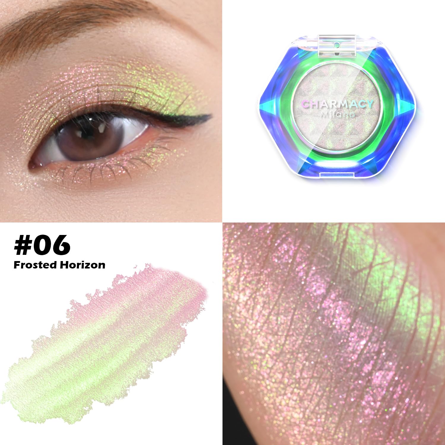 MULTICHROME COLOR TRANSFORMATION: As the light changes, it morphs through a series of vivid hues, crafting an otherworldly, opulent, and deeply dimensional makeup look that will turn heads.