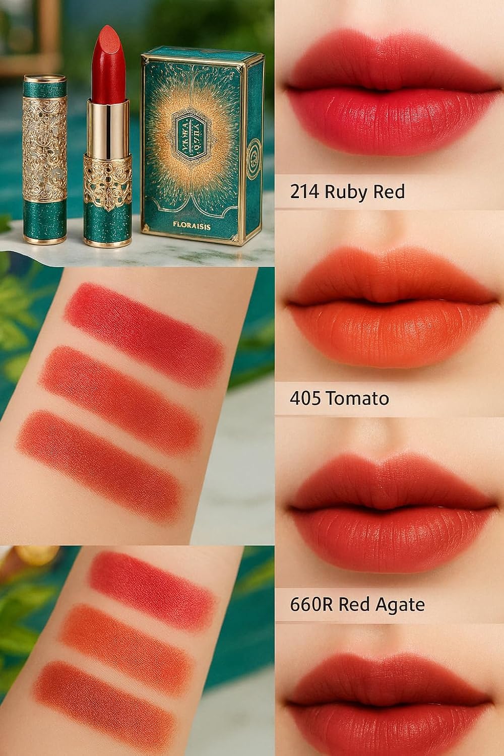 Oriental Vintage Carved Lipstick: Luxurious Red Matte Silky Finish