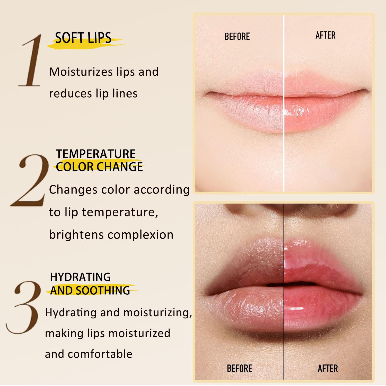 【Long-Lasting &Lightweight 】Lipstick uses a long-lasting and gentle formula with a beautiful transparent jelly texture, which is light and non-sticky and applies smoothly