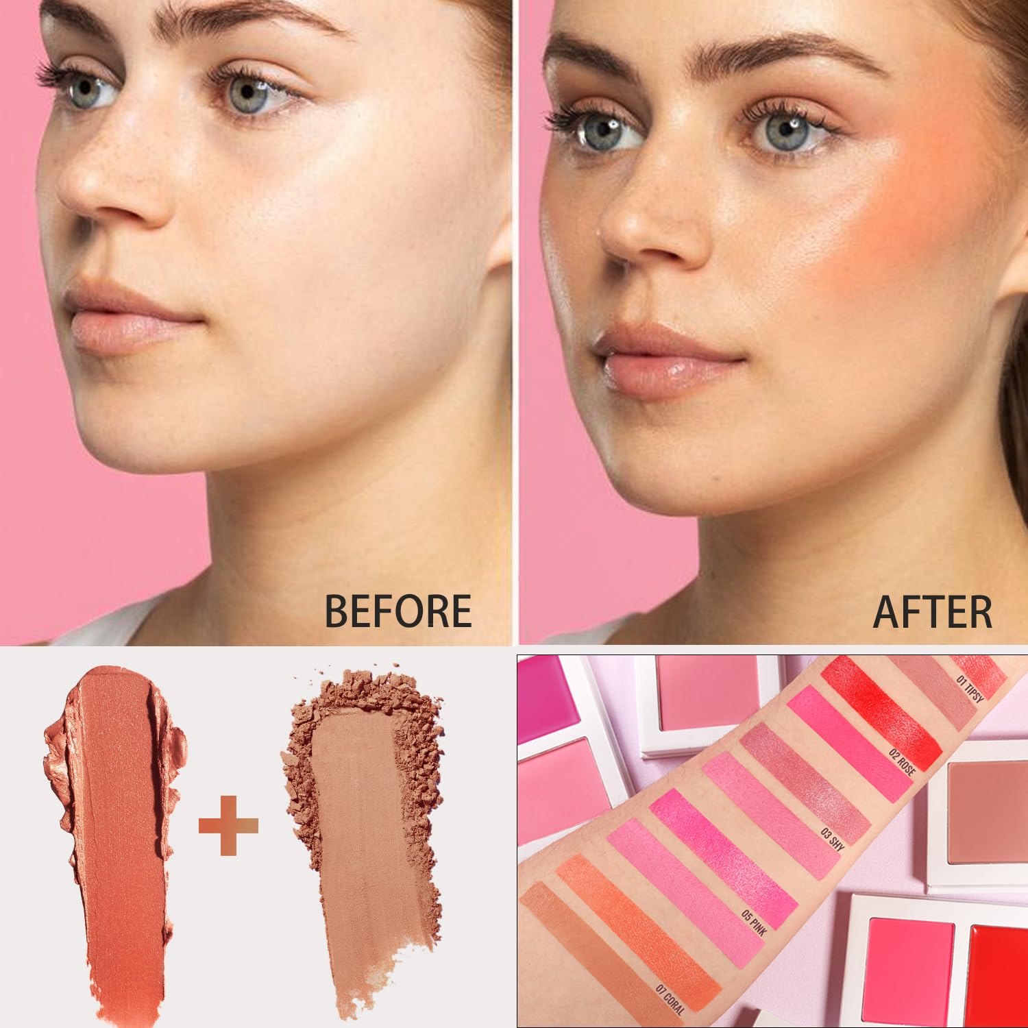 🧡2 Tone Texture: Our travel size blush palette contains two textures and shades, pressed powder and great cream blush. It is moisturizing and a solid pop of color. Natural Finish blush make shades paired in just the right way to meet the needs of different groups of people and makeup looks, bringing endless possibilities to your makeup!