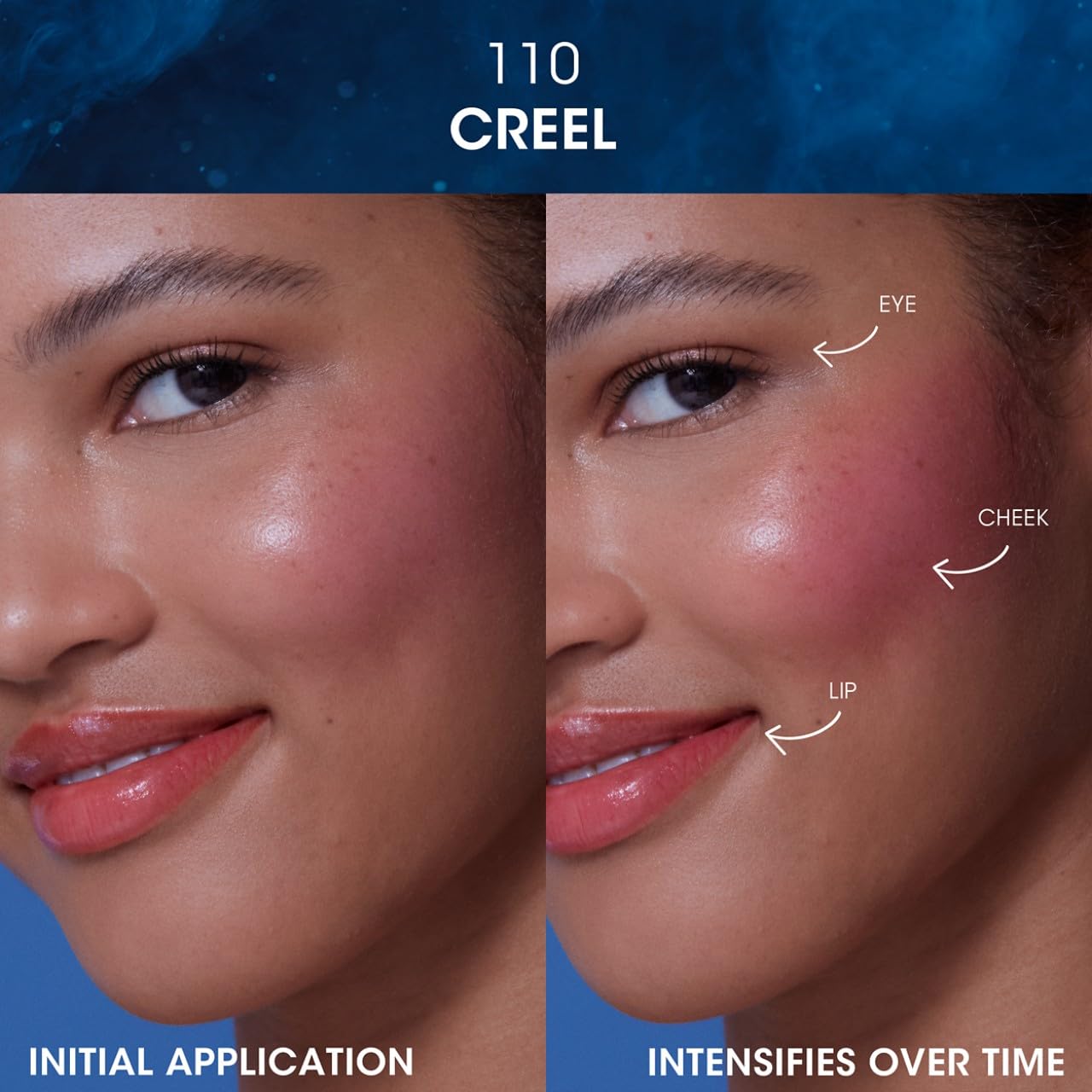 Available in 2 shades: 001 (shimmer black transforms to custom wash of purple on skin), Creel (shimmer purple transforms to custom flush of pink on skin).