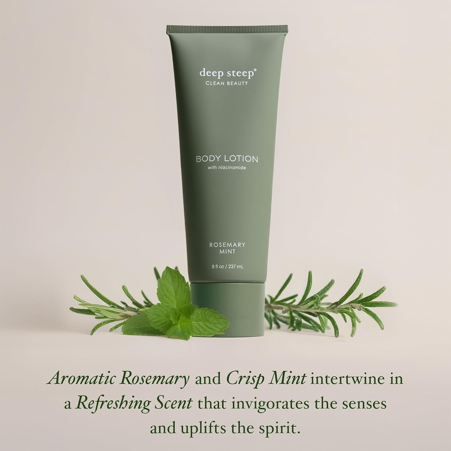Deep Steep Body Lotion, Rosemary Mint, 8 oz – Moisturizer with Coconut Oil, Shea Butter, Argan Oil, Aloe Vera & Niacinamide – Vegan, Clean Beauty, Daily Skin Hydration