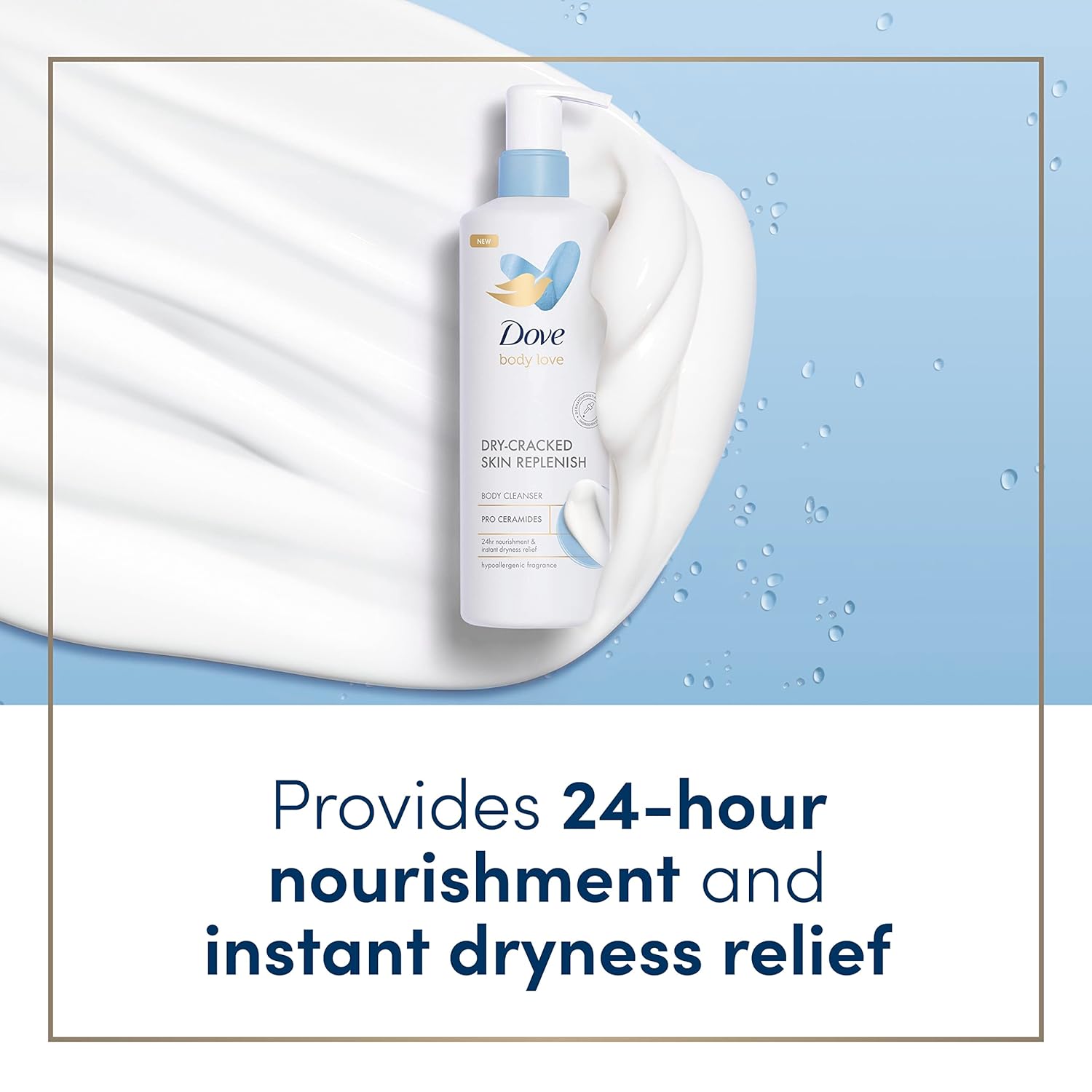 REPLENISH DRY-CRACKED SKIN: Dove Body Love Dry-Cracked Skin Replenish Body Cleanser delivers 24-hour nourishment and instant dryness relief